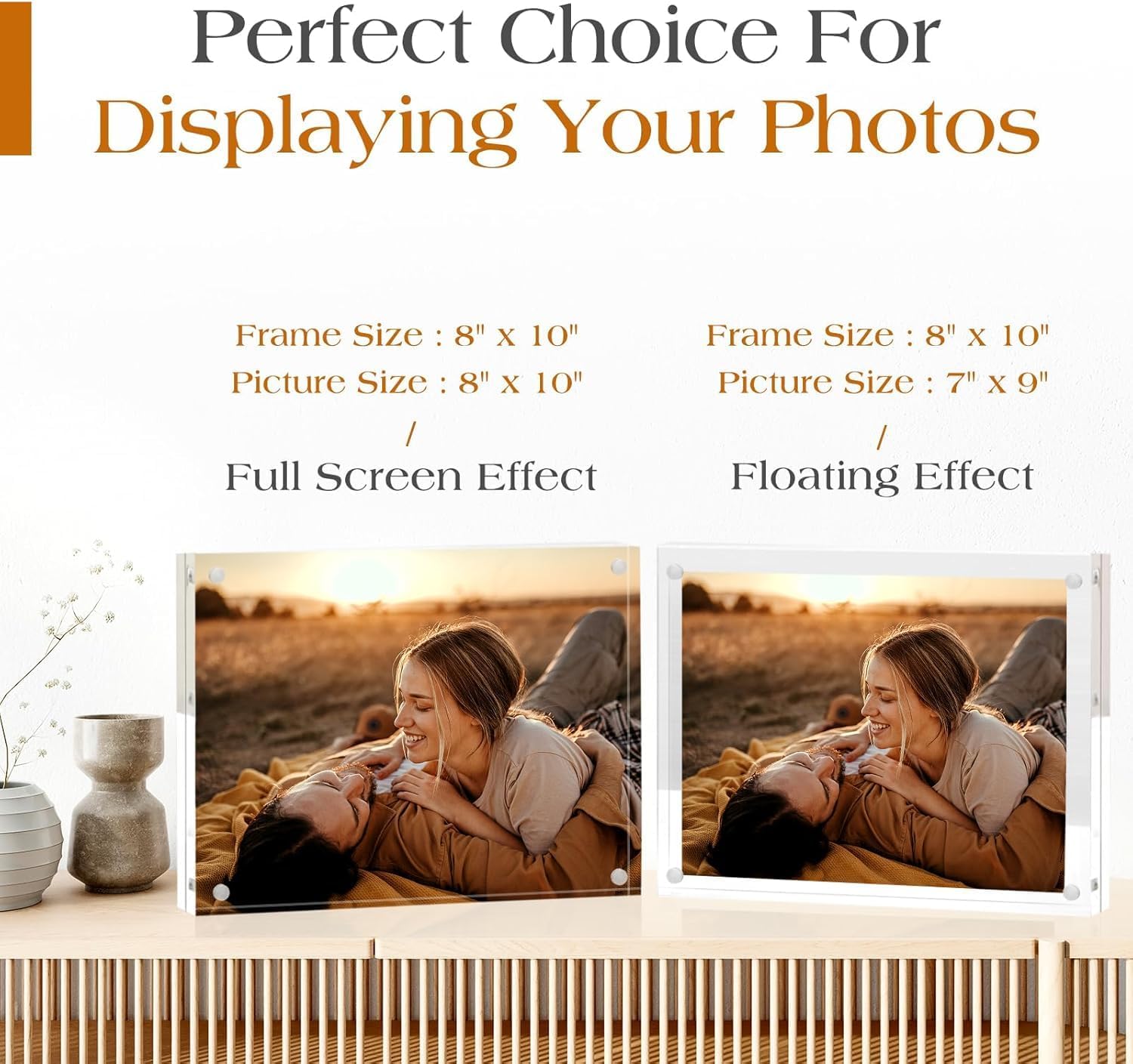 • Versatile and Multi-Purpose: The clear floating acrylic picture frame 8x10 is perfect for various display options. From family photos to artwork, certificates, and even currency, this frame adapts to your needs, making it a must-have addition to your collection