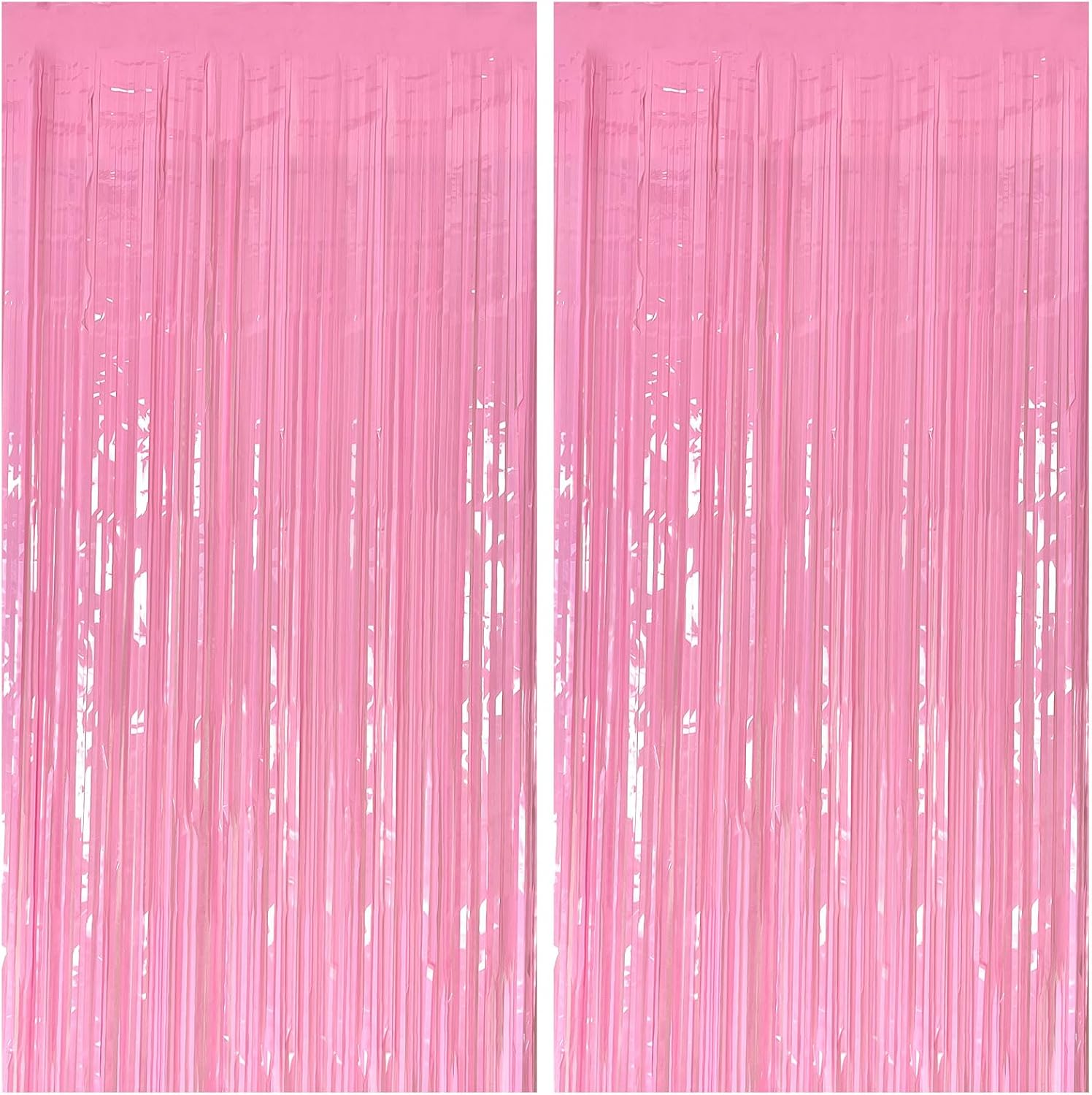 2 Pack Foil Curtain Pink Backdrop Streamers Metallic Tinsel Fringe Curtains Photo Booth Props for Birthday Wedding Engagement Bachelorette Christmas Holiday Celebration Party Decorations