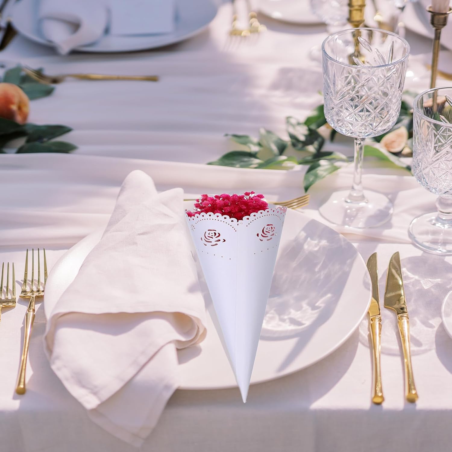 • Instruction: Each cone has a wide opening, making it easy to fill with flower petals, confetti, or other decorative items.