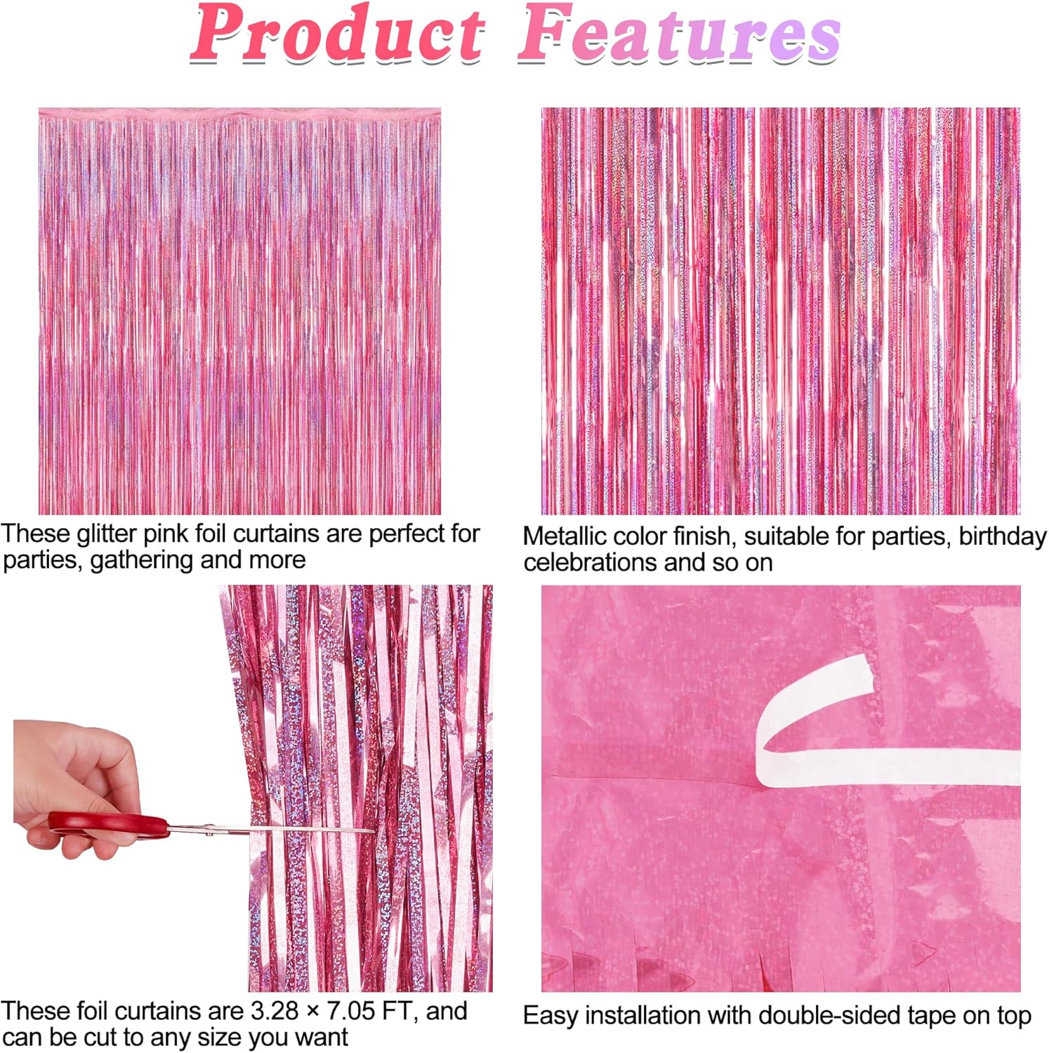 • Glitter Design: Each foil curtain displays a unique glitter pink color with a laser-reflective metallic finish, adding a glittery visual effect to your Valentine's Day decorations.