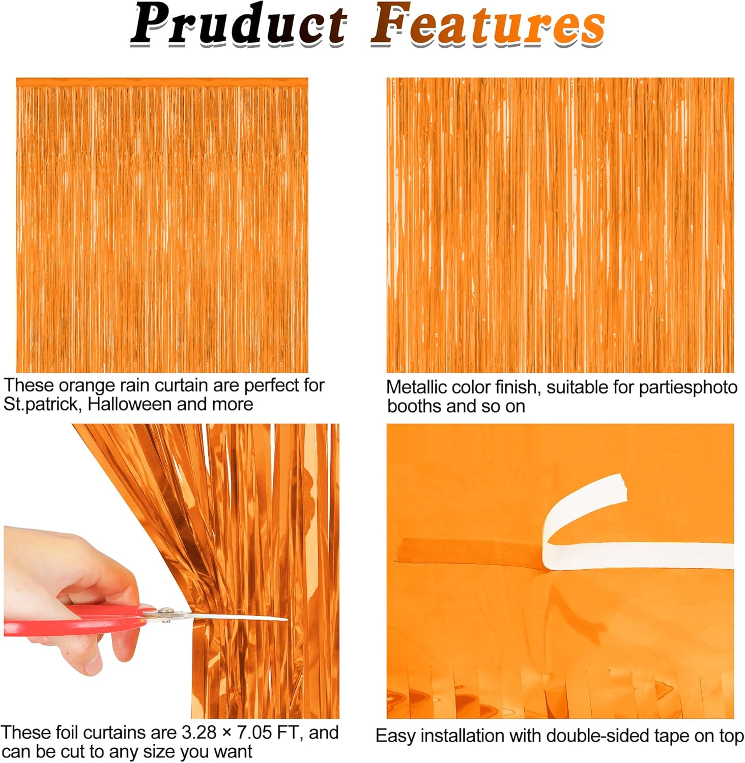 • Design: These foil curtains feature a orange color along with a metallic finish, creating a mysterious and slightly scary atmosphere.