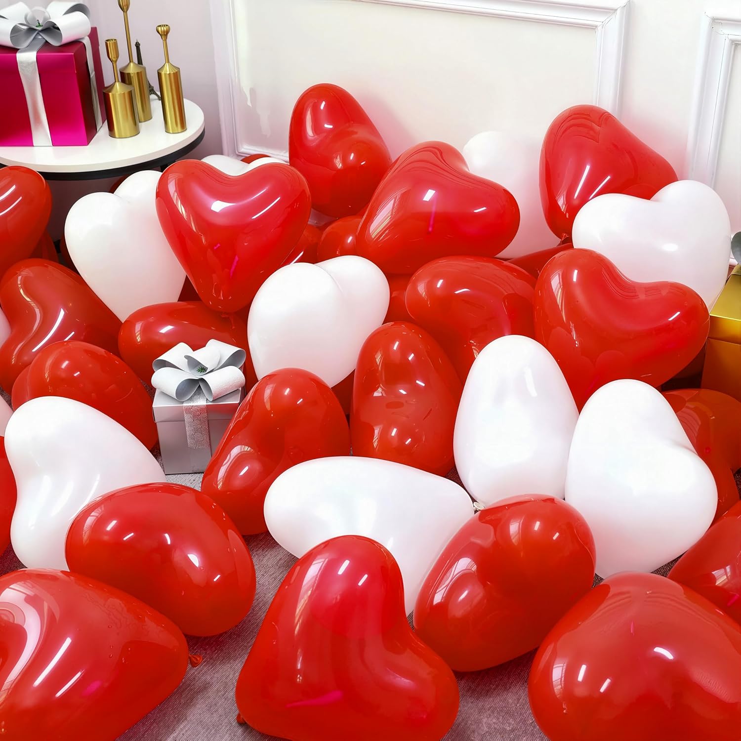 Red and White Heart Balloons - 50 Pcs Heart Shaped Balloons for Romantic Decoration, Wedding, Anniversary, Engagement, Birthday Party, Love Events