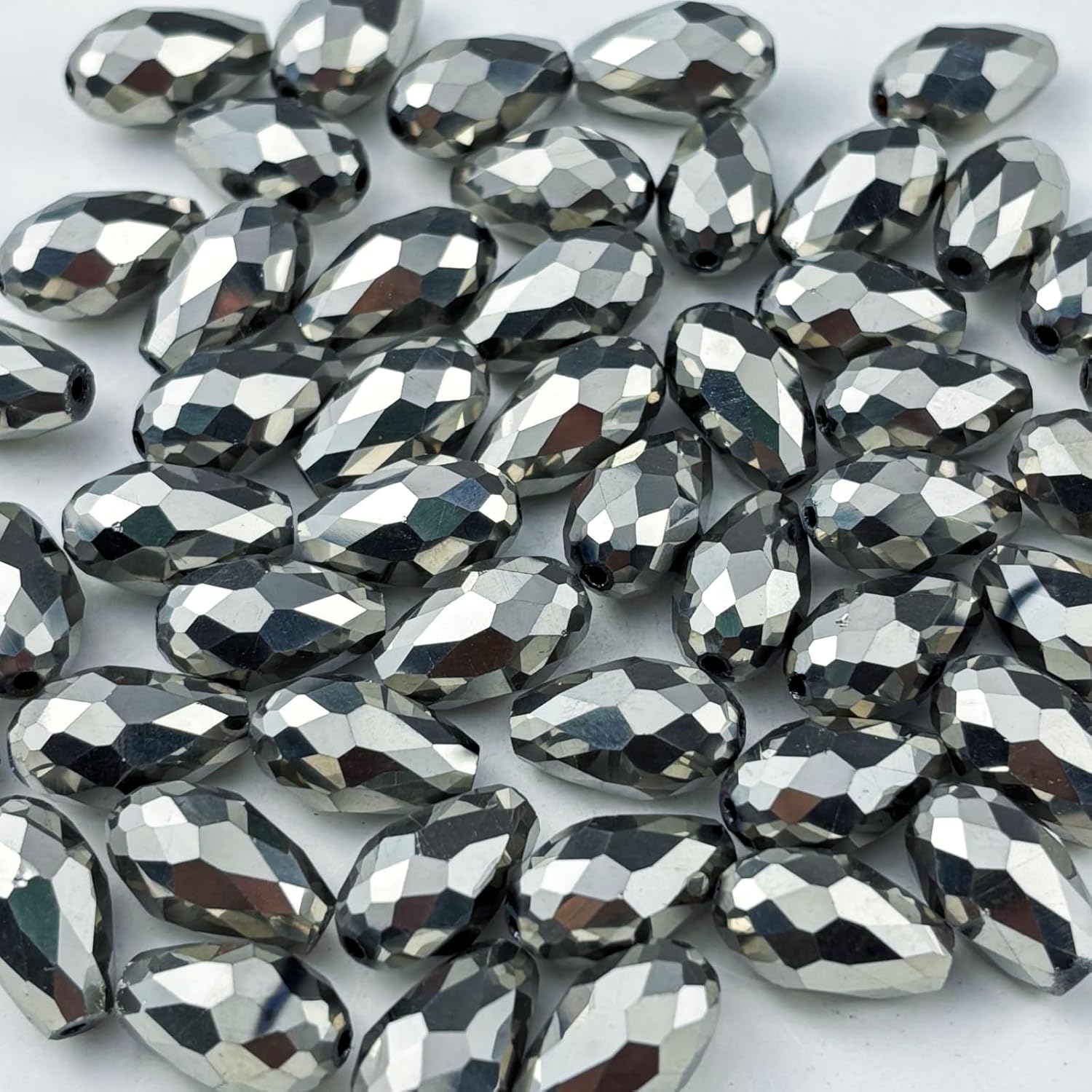 150pcs 4x6mm Teardrop Crystal Glass Beads for Jewelry Making, Faceted Vertical Hole Teardrop Glass Spacer Beads for Wind Chimes Bracelet Earring Necklace DIY Craft(Silver)