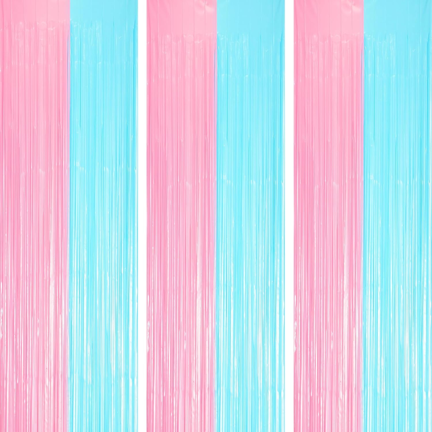 3 Pack 3.3 x 8.2 ft Pastel Blue and Pink Foil Fringe Backdrop Curtains, Tinsel Streamers Party Decorations, Fringe Backdrop for Grender Reveal, Baby Shower, Birthday Party