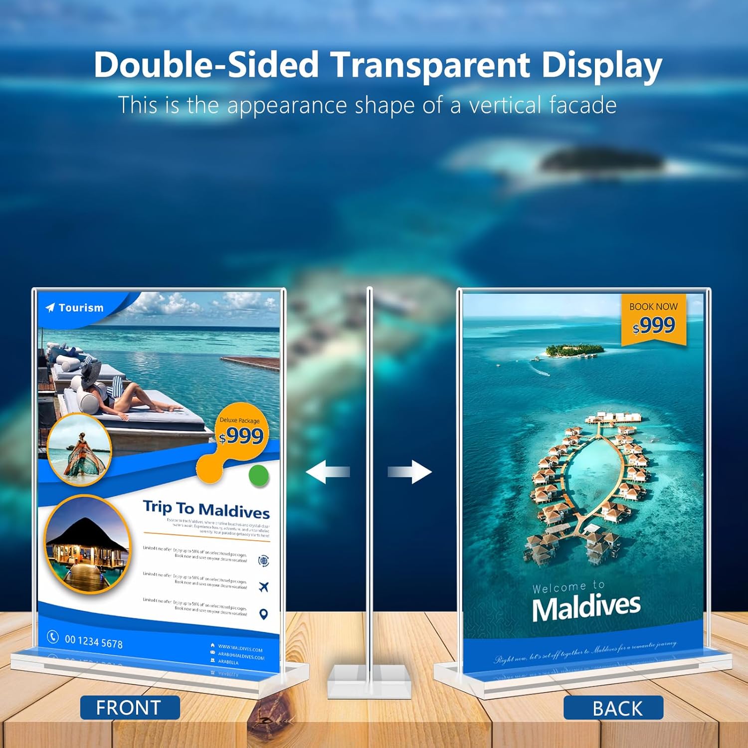 • Double-Sided Display Stands: Pro Tip-- Before using your display stand, make sure to remove the protective film from both the acrylic panel and the base. This will ensure a crystal-clear and ultra-transparent display stand. Unlike slanted back sign holders that only display on one side, our double-sided design allows your flyers to be showcased and protected on both sides