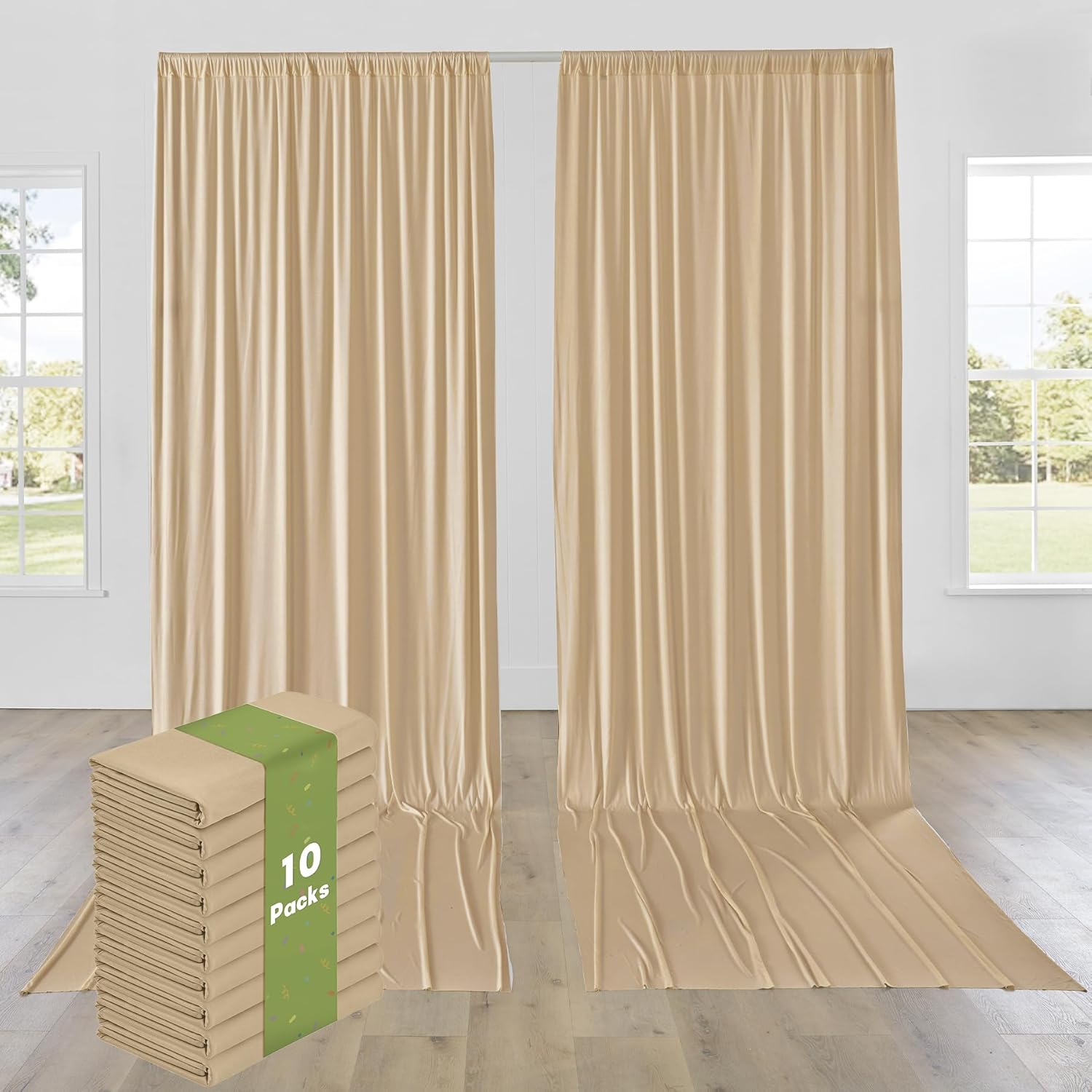 PartyVillage 50ft×15ft Beige Backdrop Curtain for Wedding Parties, 10 Panels Wrinkle Free 15 FT Long Polyester Photo Backdrop Drapes Back Drop Cloth for Birthday Photography Background