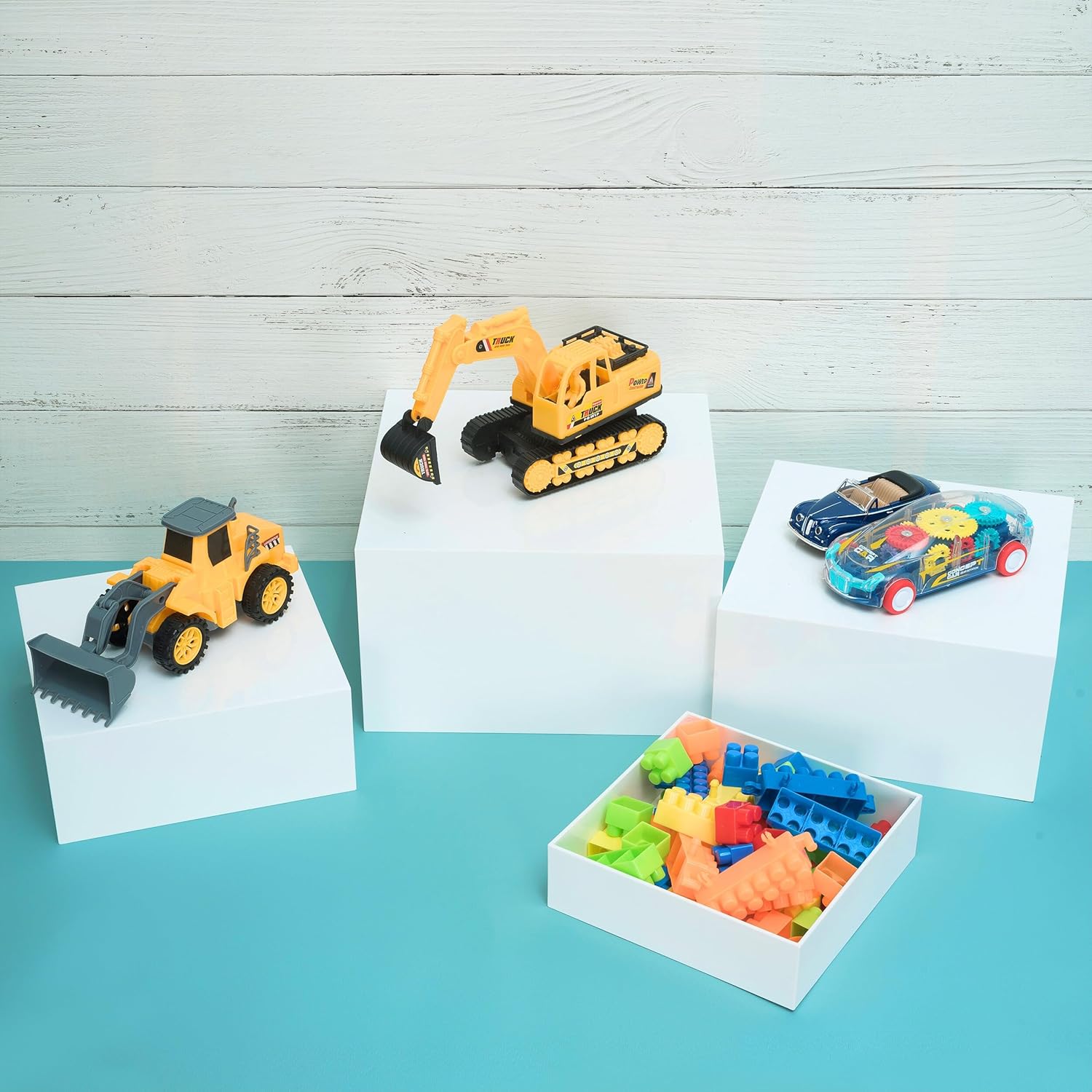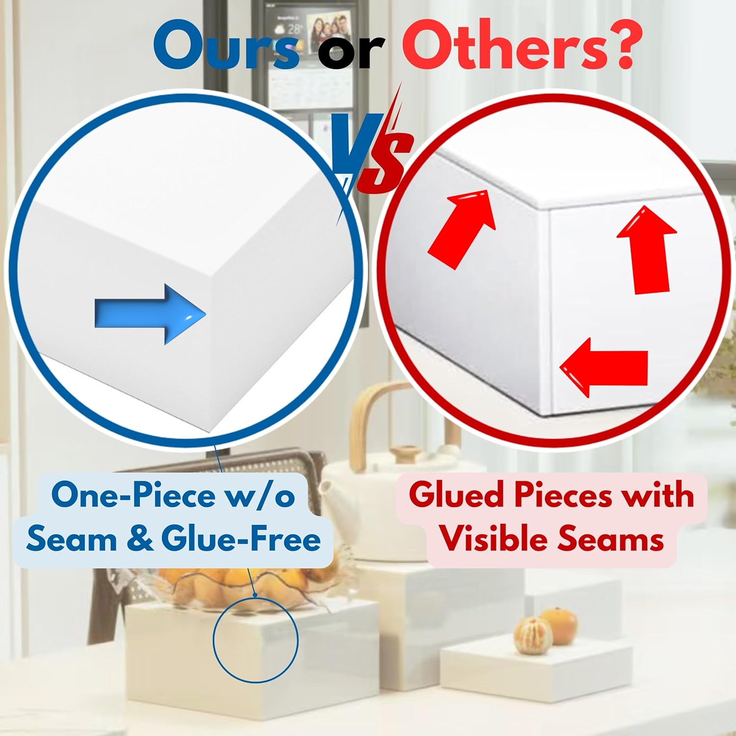 • Multi-Purpose – These white acrylic risers can be used as stands for food platters, jewelry, crafts, or retail displays. With a simple flip, they transform into storage boxes, perfect for holding small household items such as keys, remotes, books, stationery, makeup products, sewing supplies, phones & chargers, small tools, craft supplies, jewelry, and more. Ideal for use in the living room, kitchen, bathroom, bedroom, mudroom, and beyond.