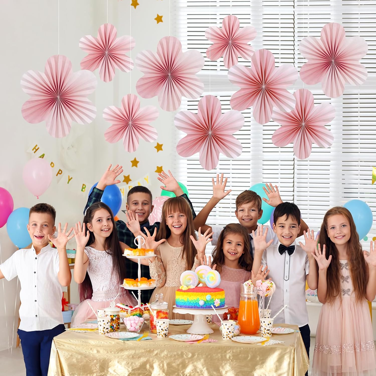 SUNBEAUTY 9 PCS Pink and Cherry Blossom Party Decorations Pink Paper Fans Decor Sunset Party Floral Backdrop Decoration Hanging Paper Flowers for Wall Birthday Wedding Baby Shower Supplies