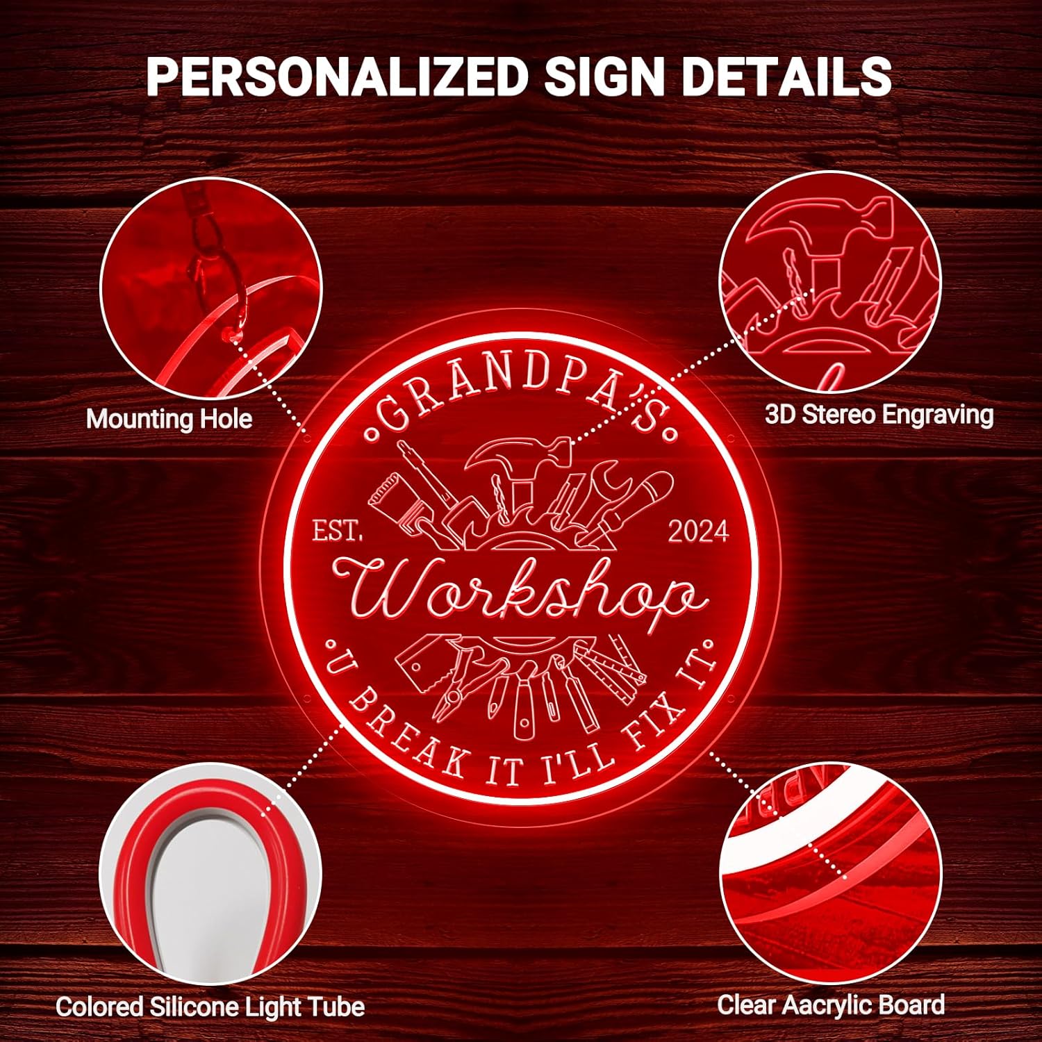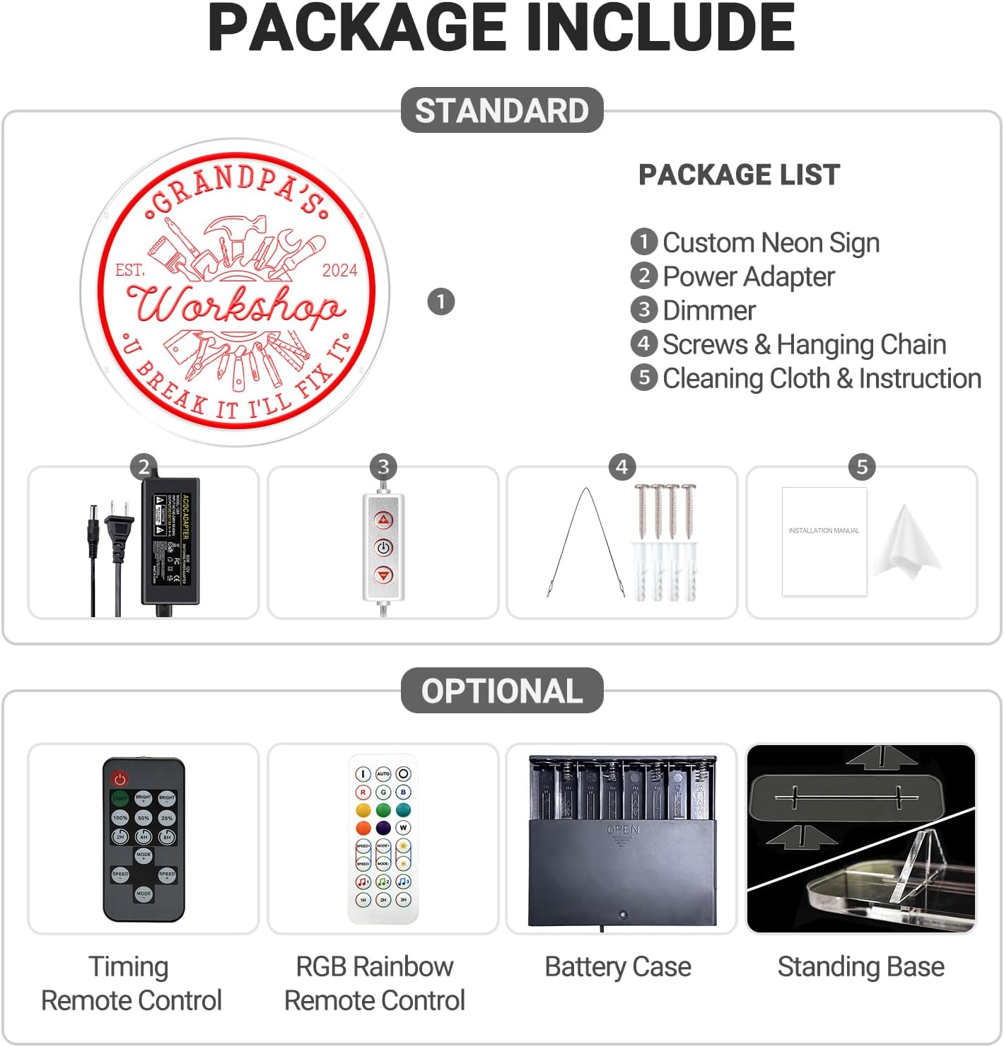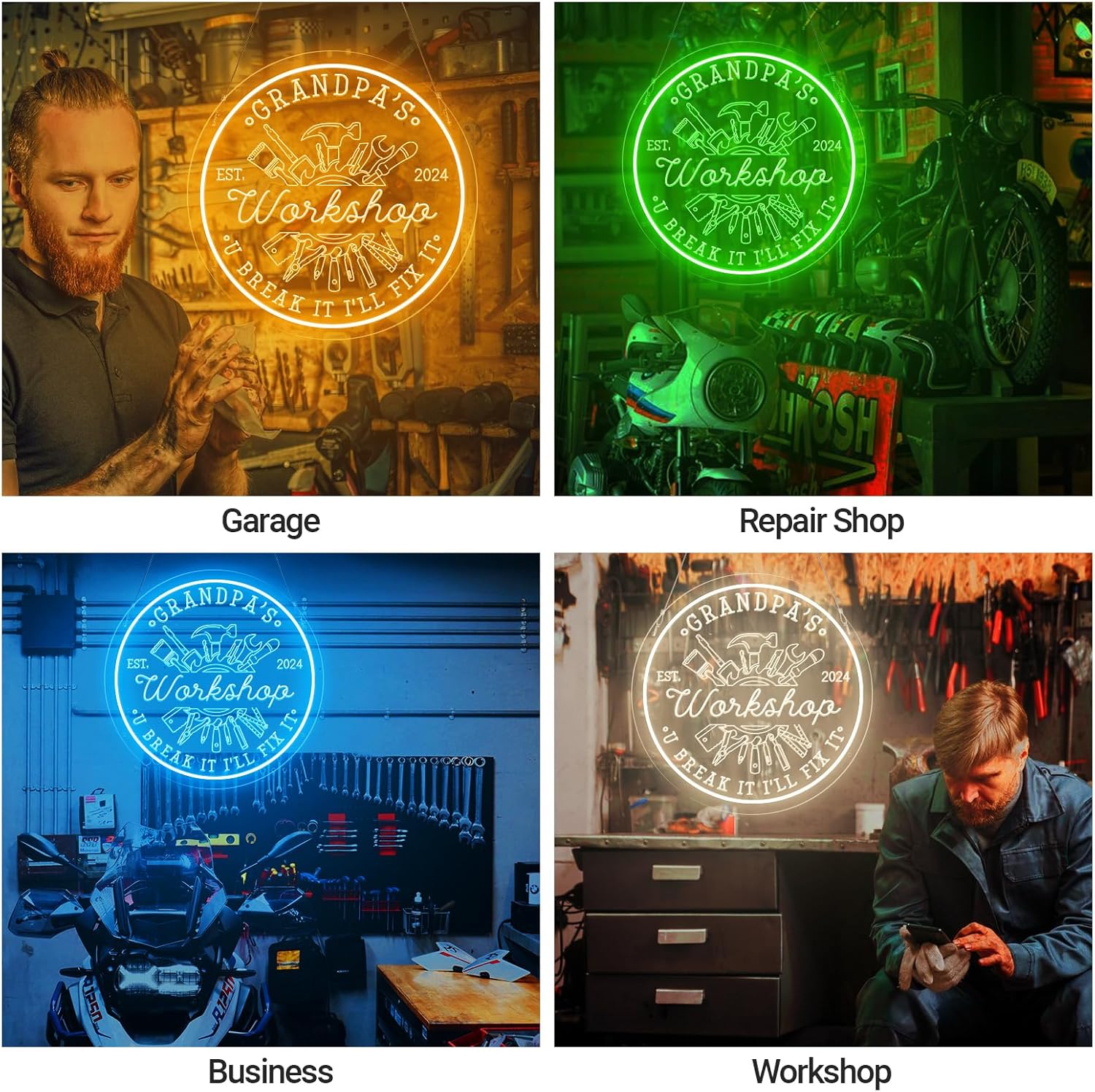 • 🎨【Personalized Garage Signs】The personalized garage neon sign create a romantic, warm and stylish atmosphere for your man cave and garage decor. Choose your favorite size and color, enter your custom text and so on and tailored to your decoration theme to create a truly belong you one-of-a-kind led sign. Click the "Customize Now" button to start!