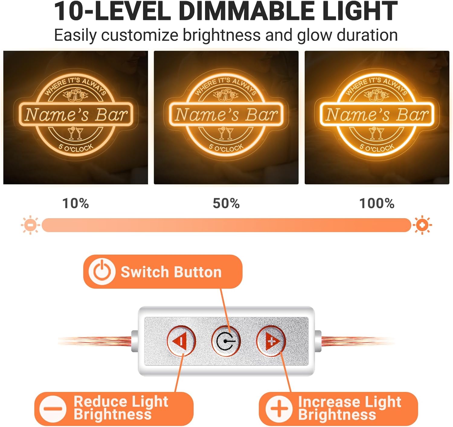 • 【Personalized Bar Signs】The personalized bar neon sign create a romantic, warm and stylish atmosphere for your home bar decor. Choose your favorite size and color, enter your custom text and so on and tailored to your decoration theme to create a truly belong you one-of-a-kind led sign. Click the "Customize Now" button to start!