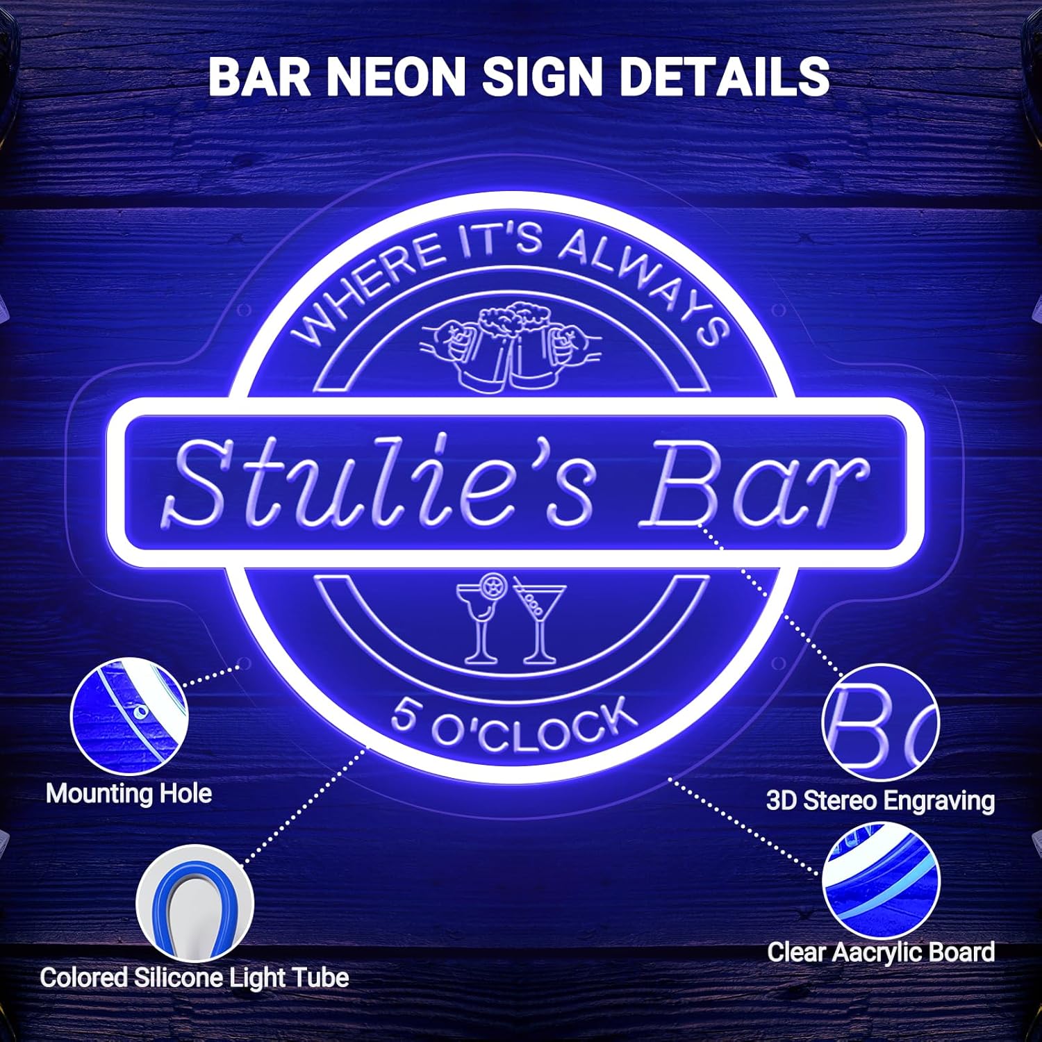 Custom Bar Neon Sign for Wall Decor, Personalized Cocktail Beer LED Light Up Signs for Home Bar, Customized Neon Lights Signs for Men Dad Gifts, Man Cave Pub Tavern Bistro Lounge Business Decor