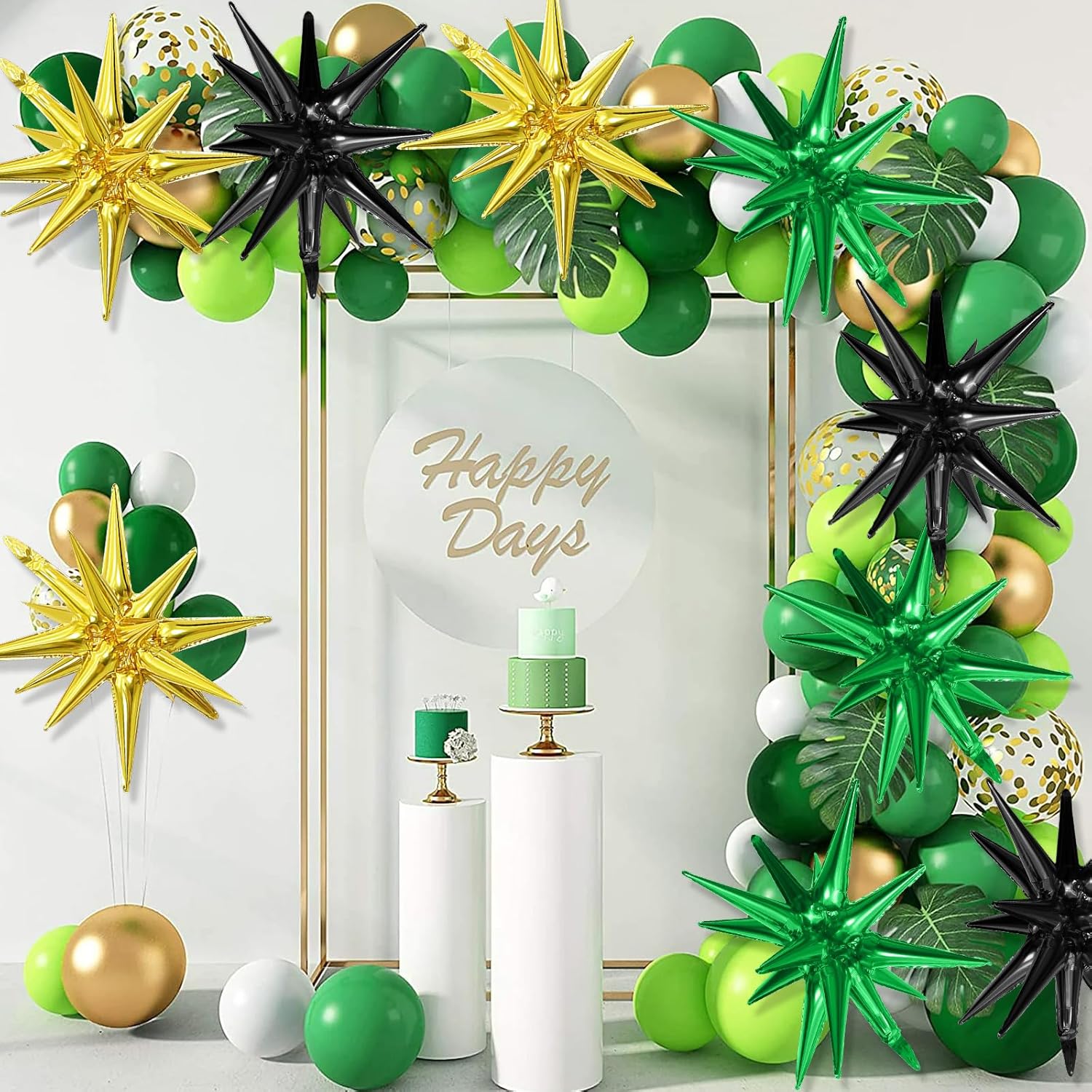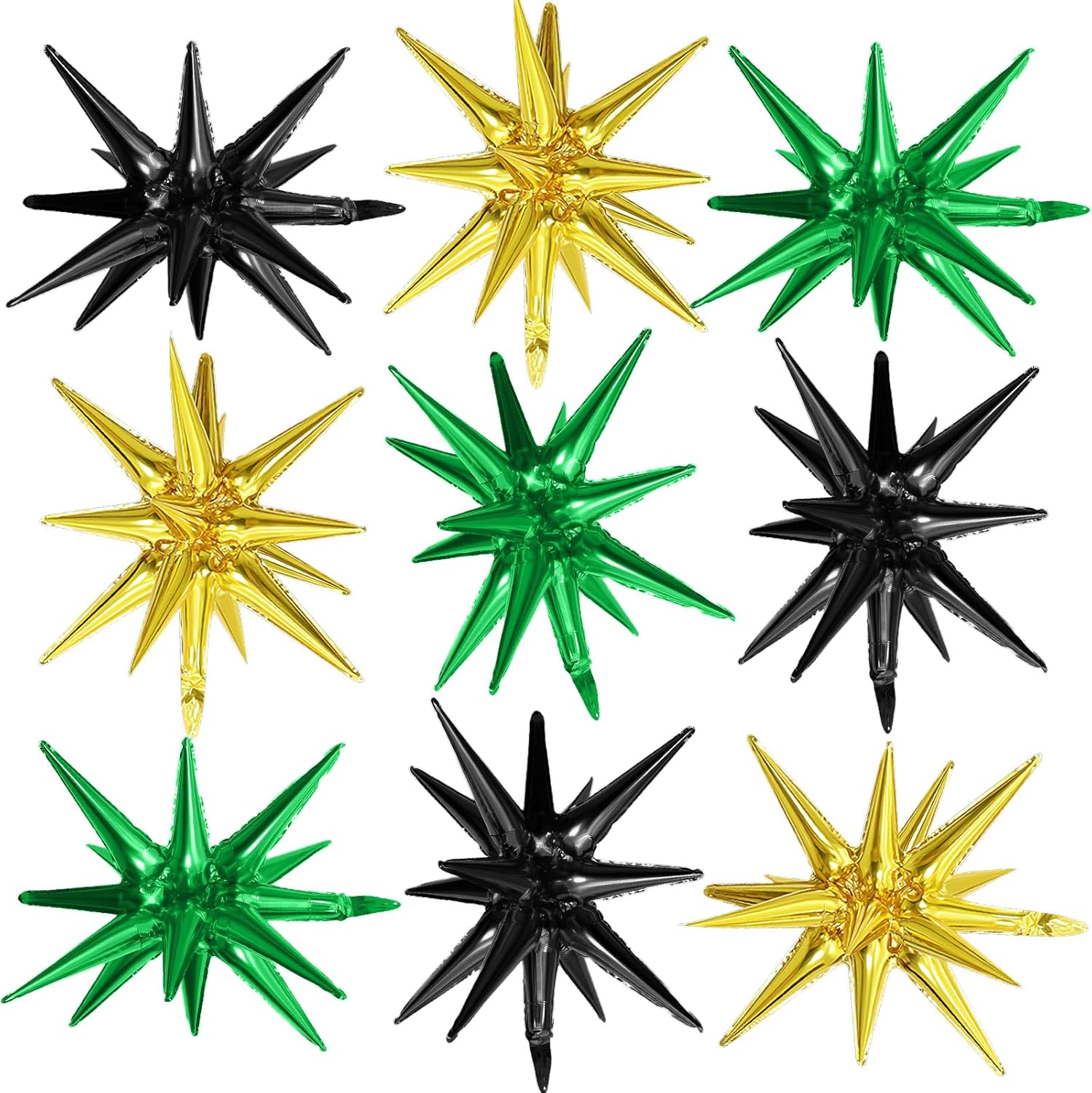 • Black Green Gold Star Balloons Set:Package include 9pcs 22Inch explosion star balloons(black x 3,green x 3,gold x 3).Large enough to help you better decorate your party.
