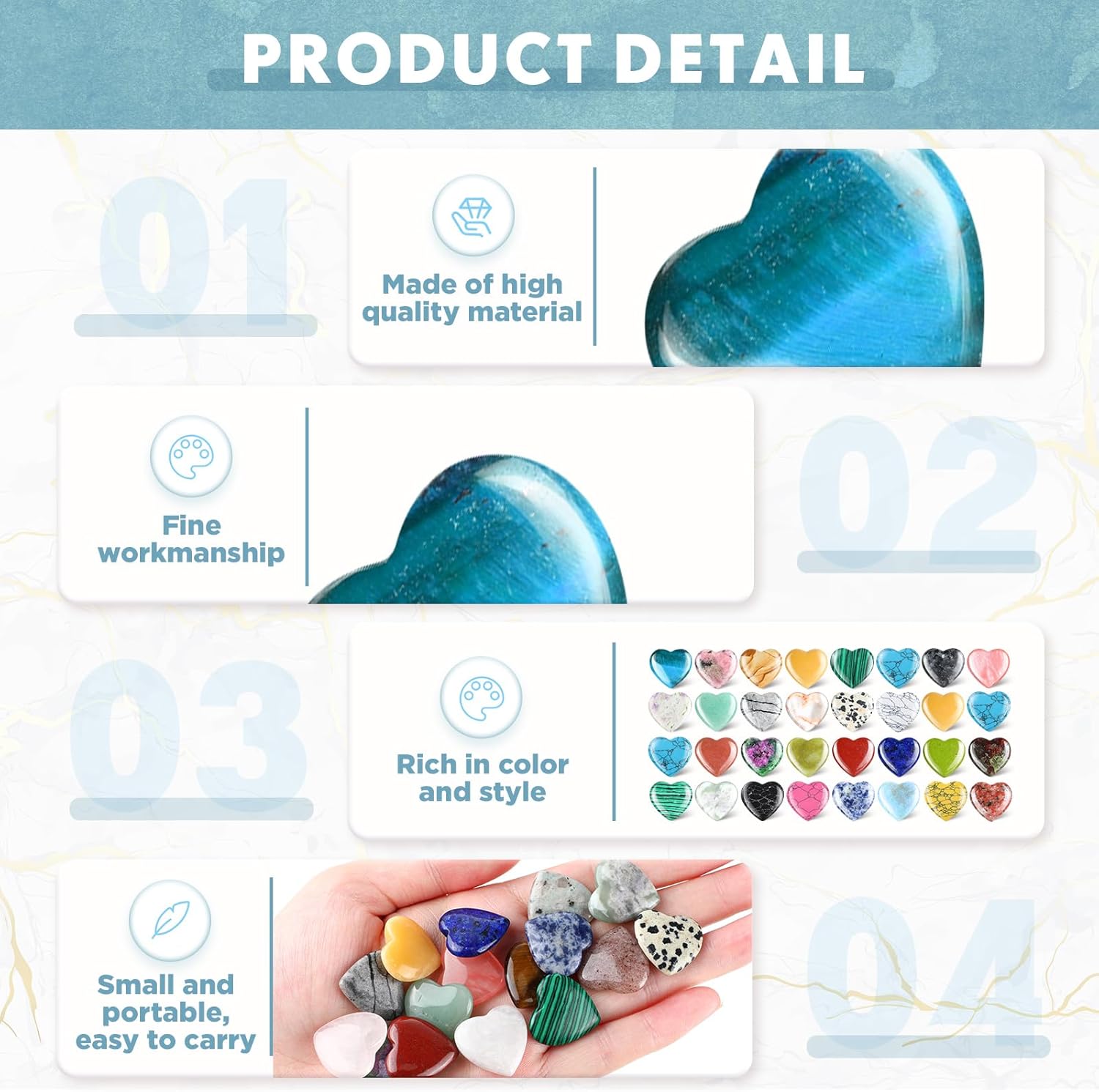 • Exquisite Craftsmanship: our heart stones and crystals are all carefully polished with exquisite workmanship, which have a smooth surface with clear texture, giving you a comfortable touch; They are lightweight and eye catching, so you can make them into accessories and carry around to balance your energy at any time