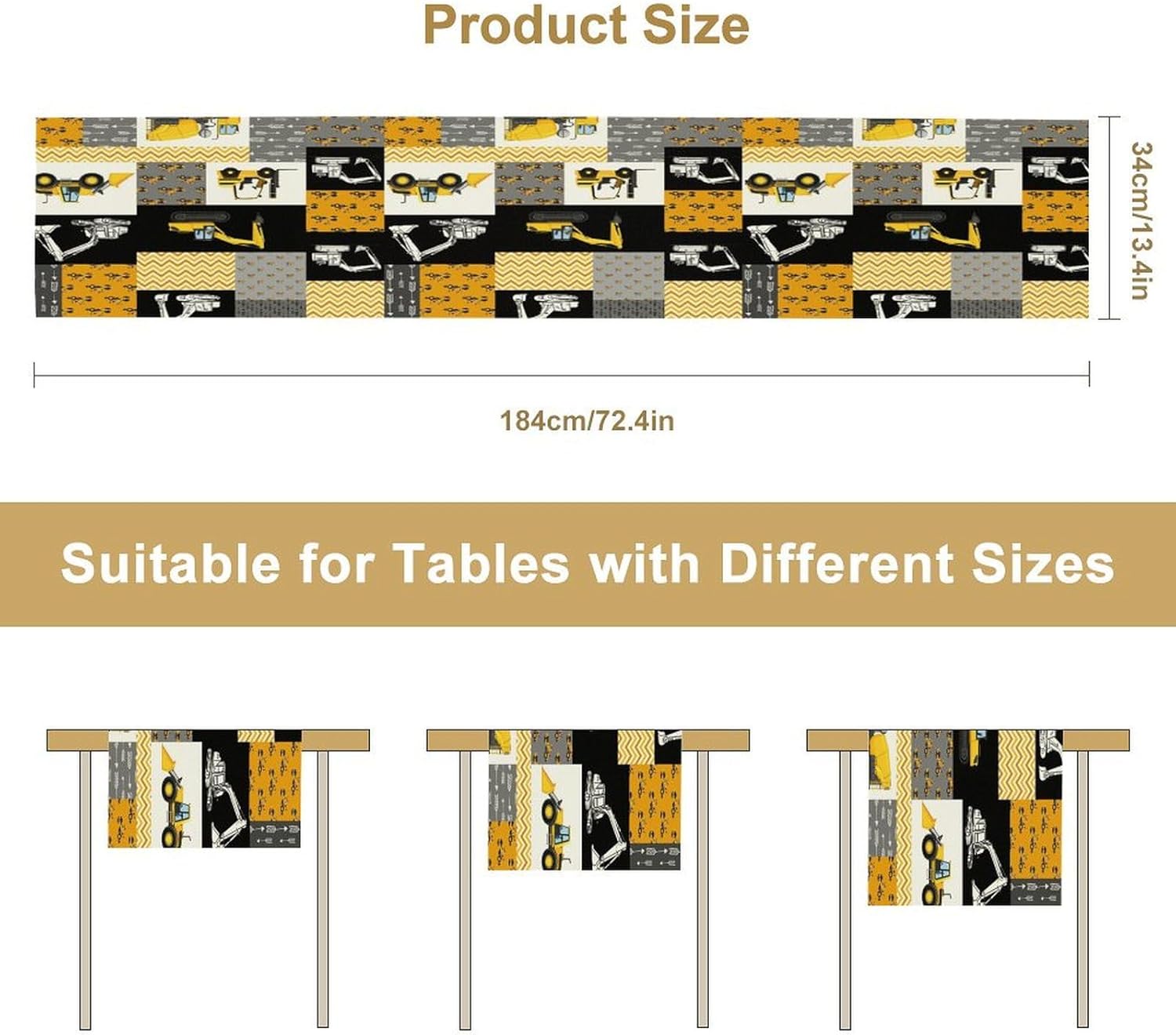 Excavator Table Runner,Boys Kids Construction Vehicles Equipment Trucks Cartoon Car Tablecloth Burlap for Hotel Indoors Outdoor Dining Room Kitchen Holiday Party, 13x36in