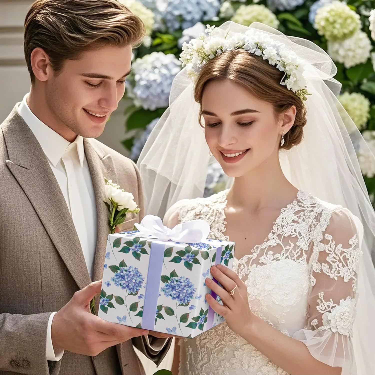 • Kraft Floral Design: Kraft blue and white hydrangea floral wrapping paper design, will make your gift exudes charm and elegance. The flower wrapping paper make it ideal for creating a wonderful gift presentation that leaves a lasting impression.