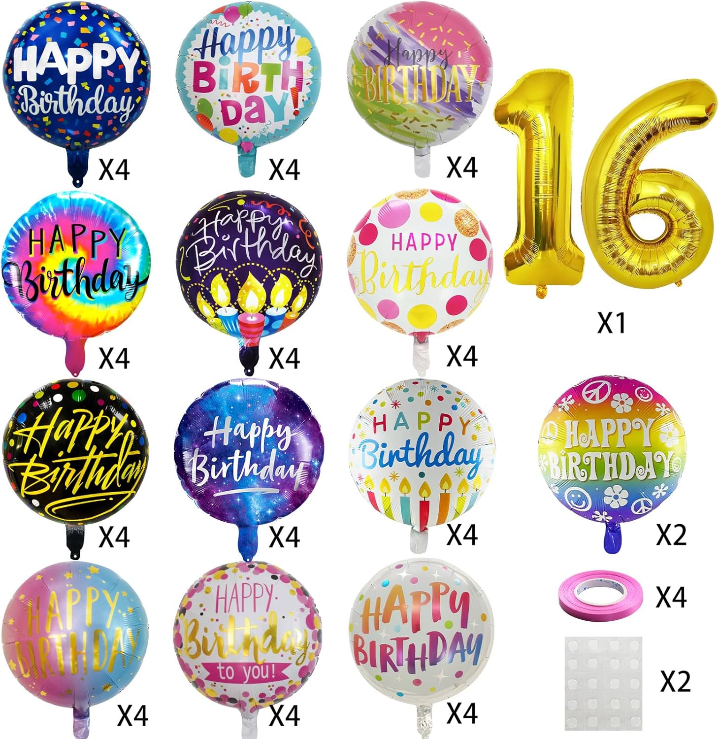 50 Pcs Happy Birthday Party Aluminum Foil Balloons and 16th Birthday Balloons, 18 Inch Round Aluminum Foil Balloon with" Happy Birthday" Sign, Birthday Party Decorations for Boys/Girls(Yellow, 16)