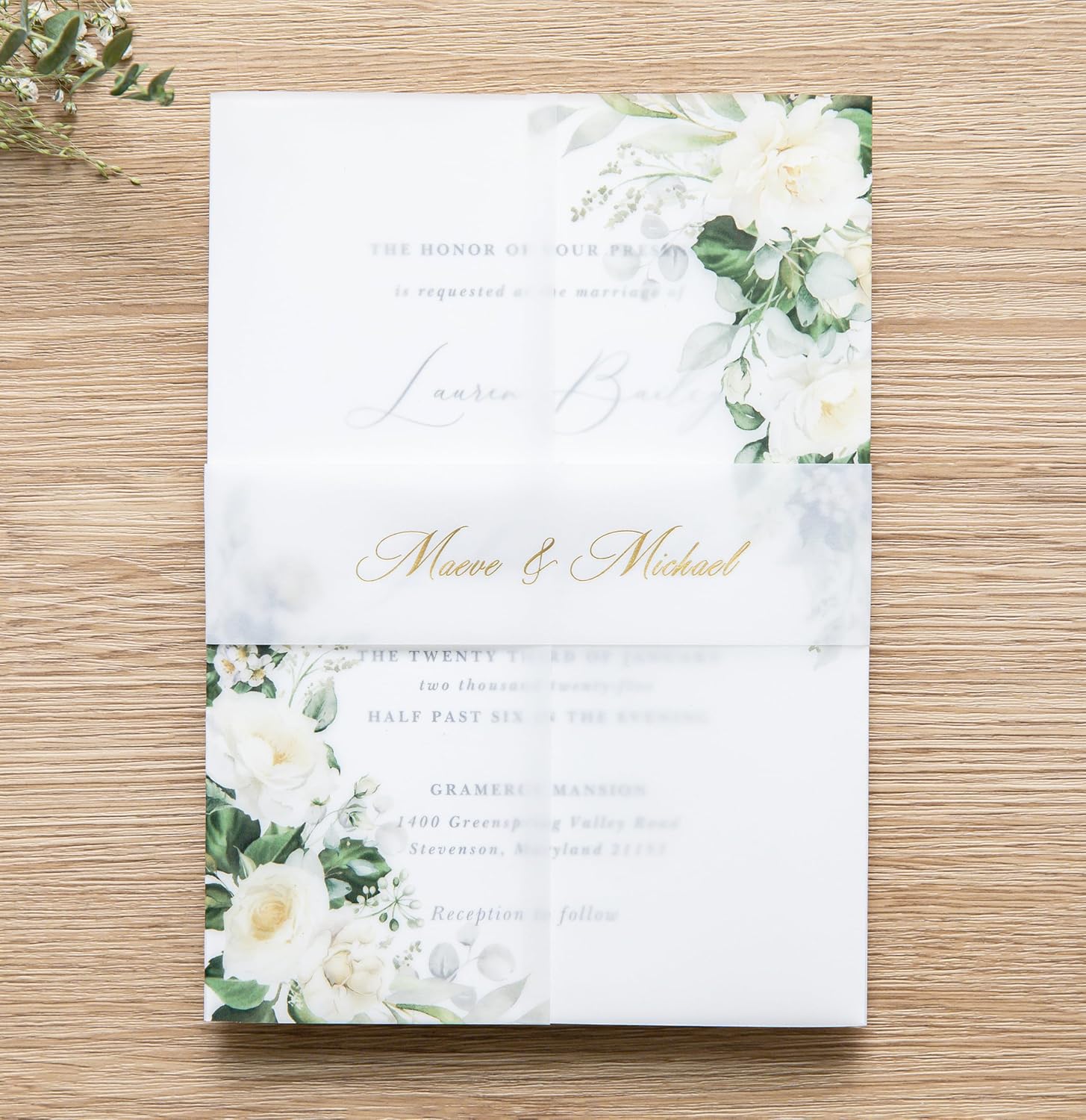 • 【What's Included】: A bulk quantity of 50 white floral vellum jackets for invitations