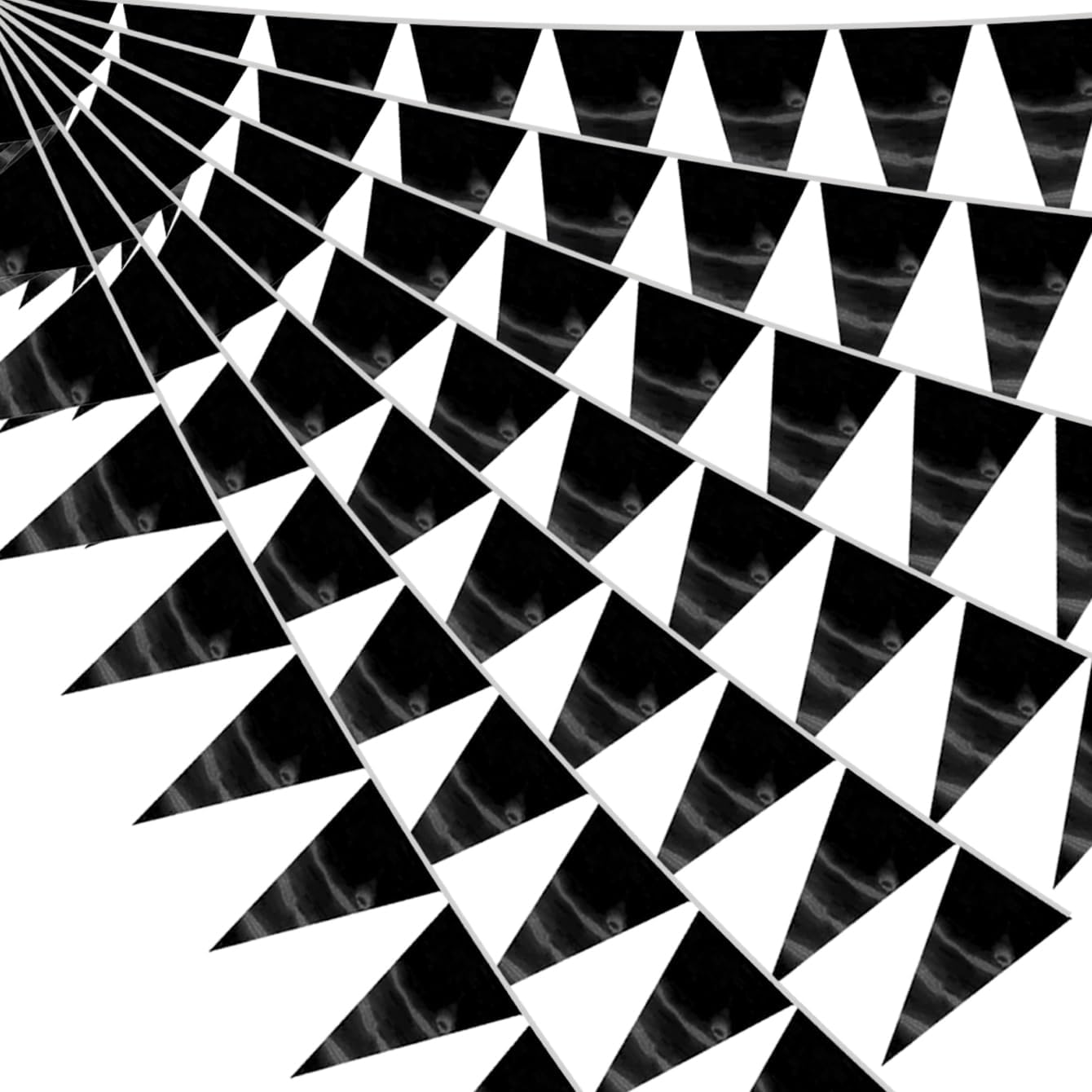 • 【Black Pennant Bunting Set】: The total length of the Black Triangle banner is 130 feet, divided into4 strips, each 32.8 feet long. Each Pennant Banner 80Flag Size: 7.87''/20cm width x 11.8''/30cm height for birthday decorations many occasions, and so on