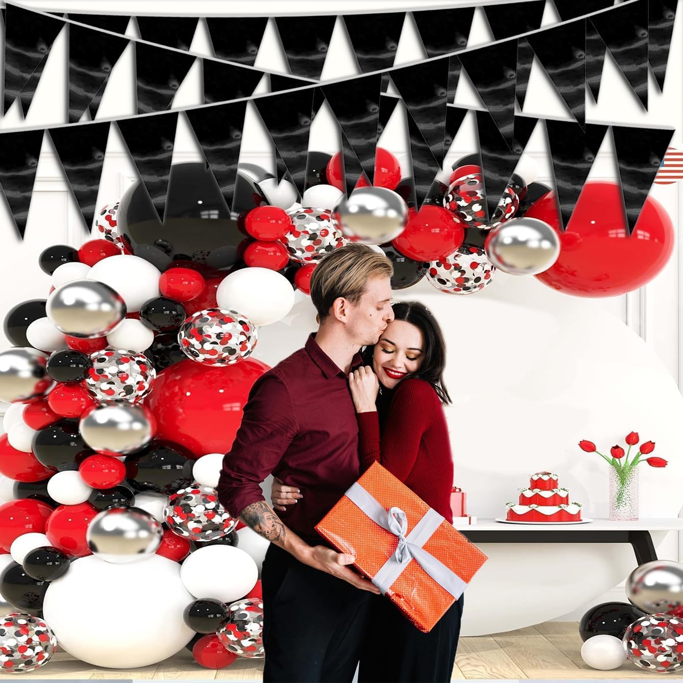 40M/130FT Black Triangle Pennant Banner Flag Metallic Fabric Bunting Garland for Christmas Graduation Birthday Wedding Engagement Bachelorette Holiday Halloween Celebration Hen Party Supplies