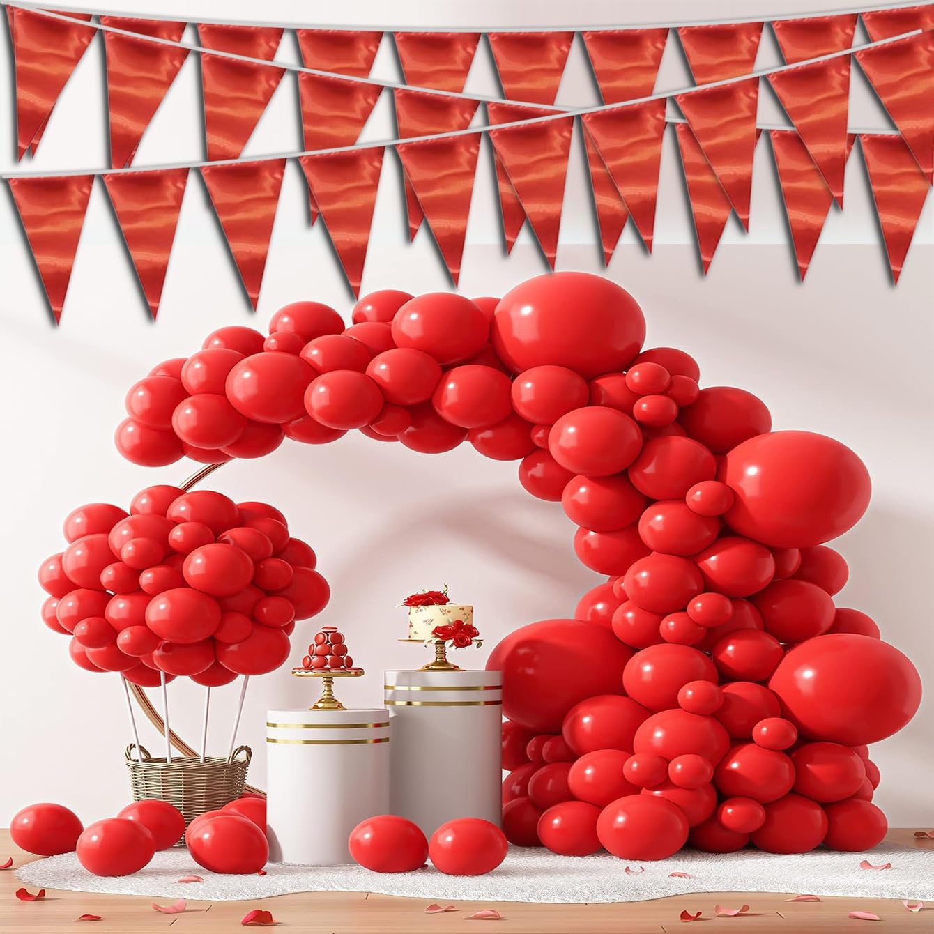 40M/130FT Red Triangle Pennant Banner Flag Metallic Fabric Bunting Garland for Christmas Graduation Wedding Engagement Anniversary Bachelorette Birthday Bridal Shower Valentines Hen Party Supplies