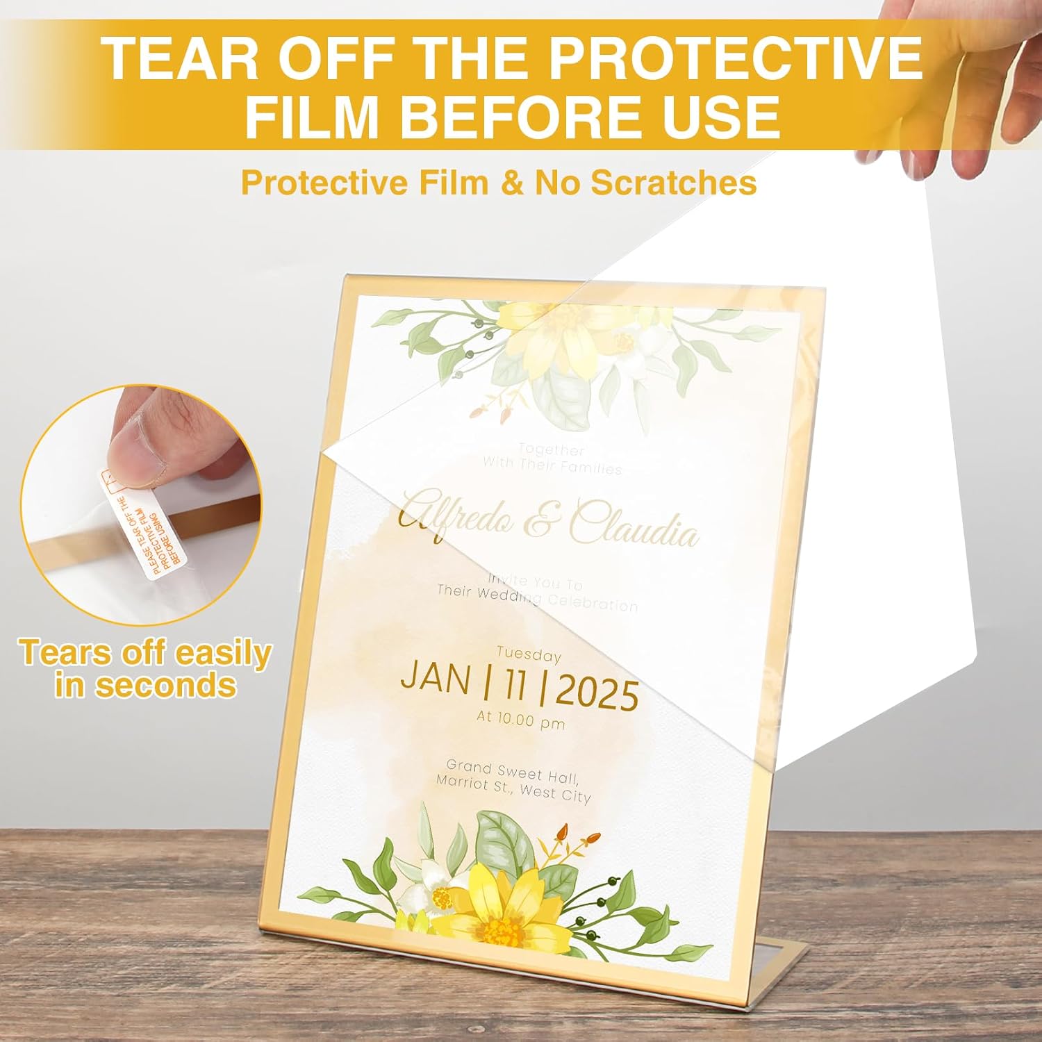 • Easy to Use: Each of our Acrylic Sign Holder comes with a peel off film guide, follow the red arrows to peel off the film in seconds, and the plastic sign holder has an opening on its side for easy paper insertion