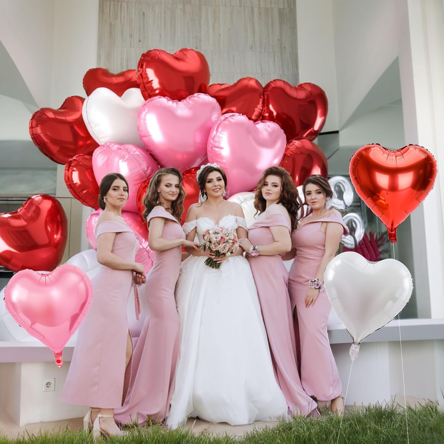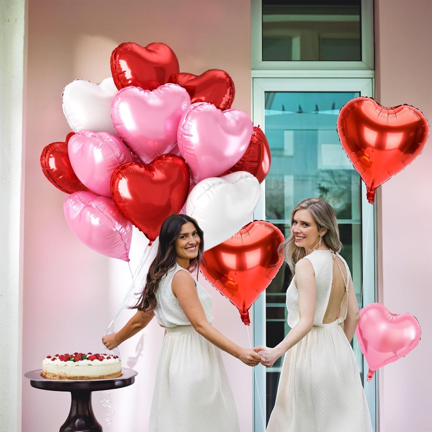 12 Pcs Heart Balloons - 18 inch Red Pink Heart Shaped Foil Helium Balloons for Wedding, Baby Shower, Valentine's Day Parties