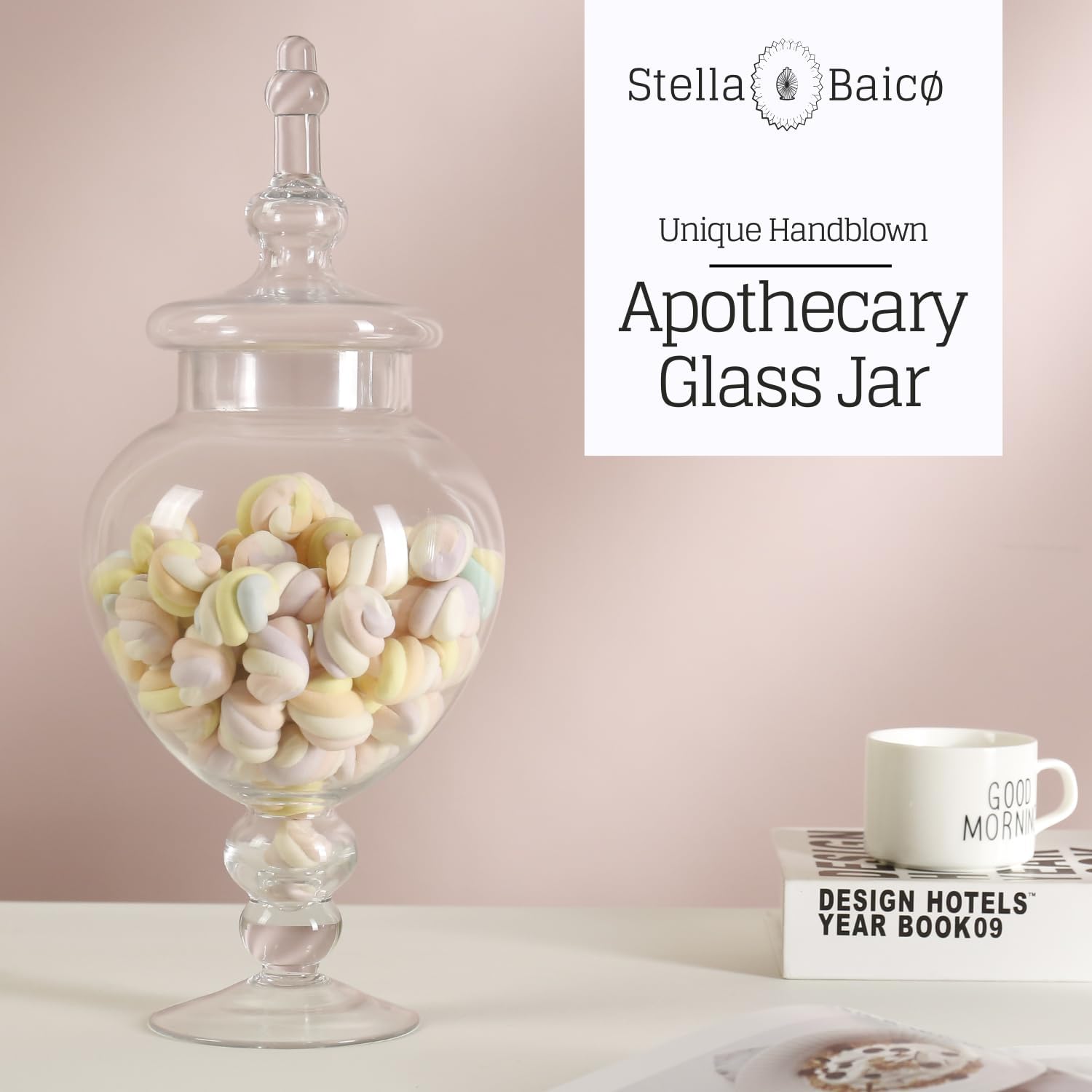 • HAND-BLOWN GLASS: Crafted from durable, high-quality hand-blown clear glass, this apothecary jar features a sleek, crystal-clear design that showcases its contents. Small air bubbles are a natural part of the hand-blown process, adding to its unique charm.