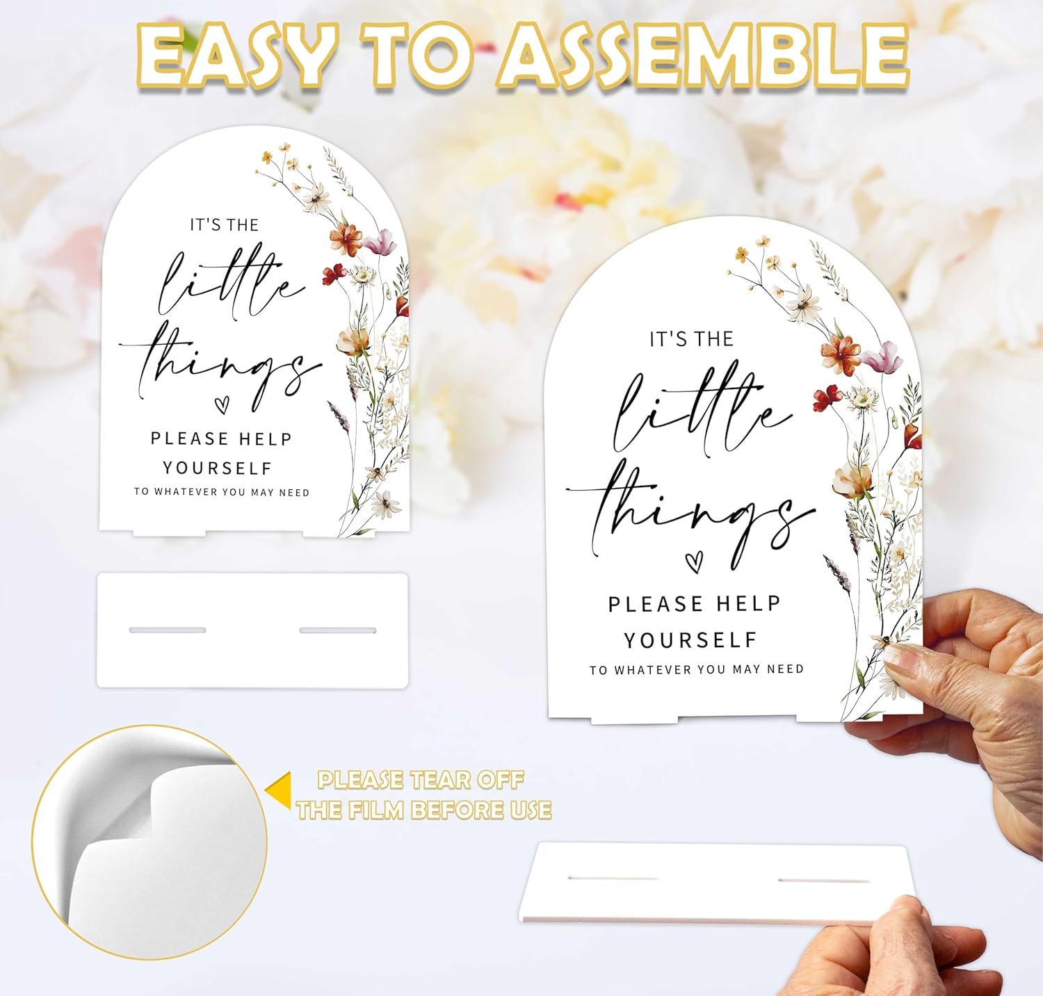 Boho Floral Wedding Bathroom Basket Sign, 6 x 8 Inch White Arch Acrylic Wedding Sign with Holder, Wedding Sign for Ceremony and Reception, Wedding Decoration, Wedding Supplies - BX09