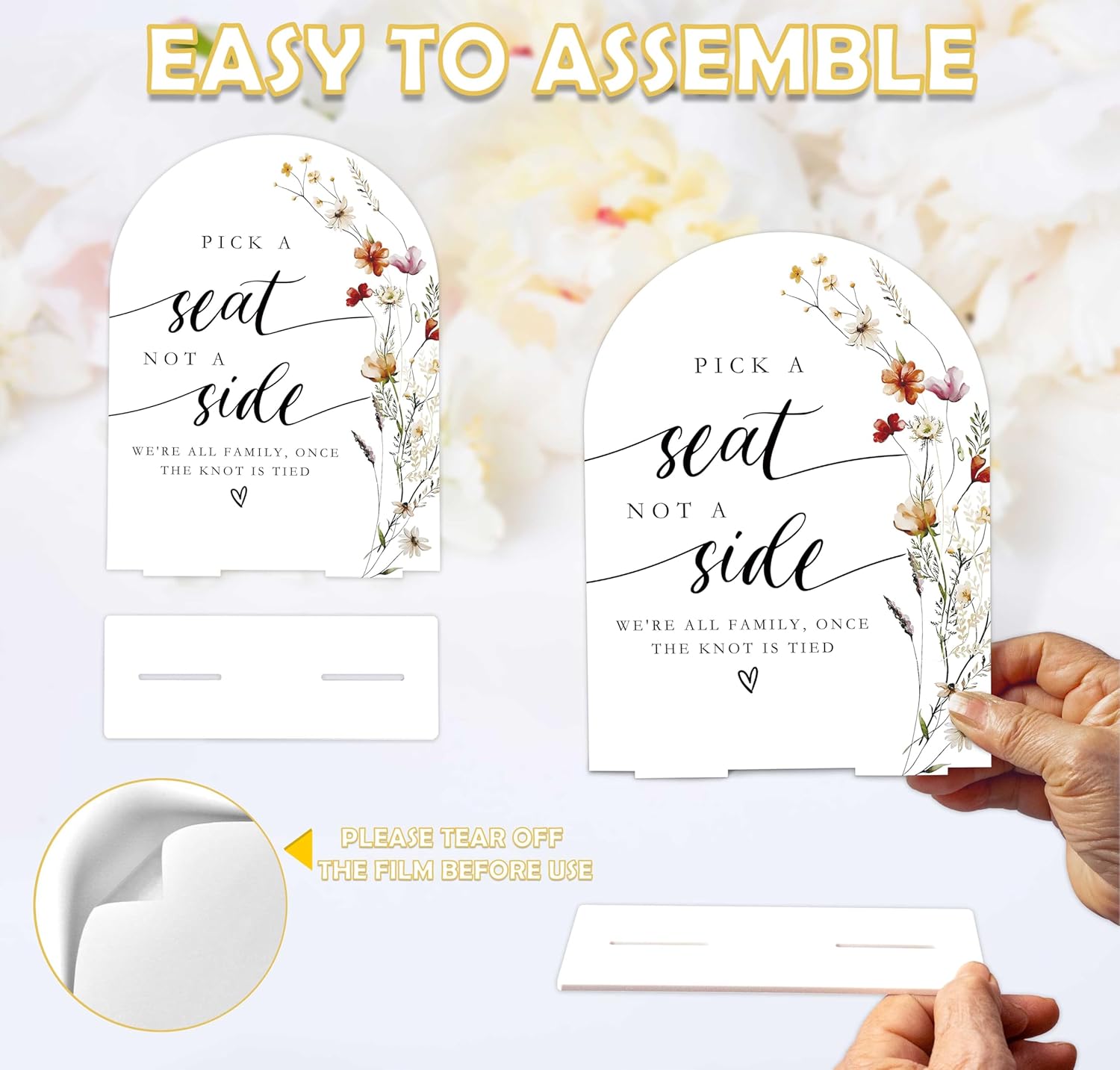 Boho Floral Pick a Seat Not a Side Sign, 6 x 8 Inch White Arch Acrylic Wedding Sign with Holder, Wedding Sign for Ceremony and Reception, Wedding Decoration, Wedding Supplies - BX17