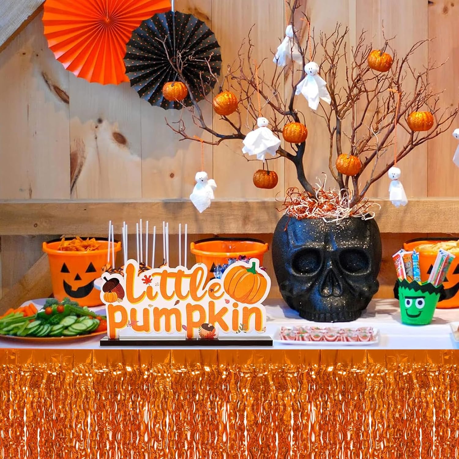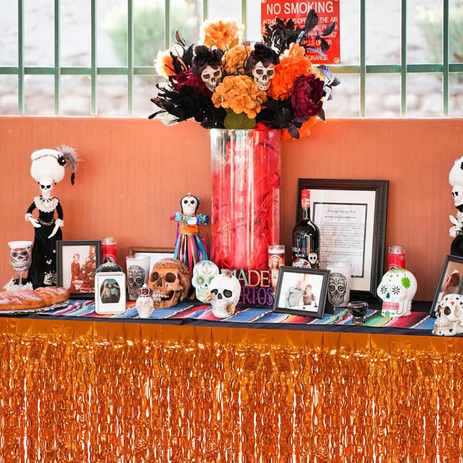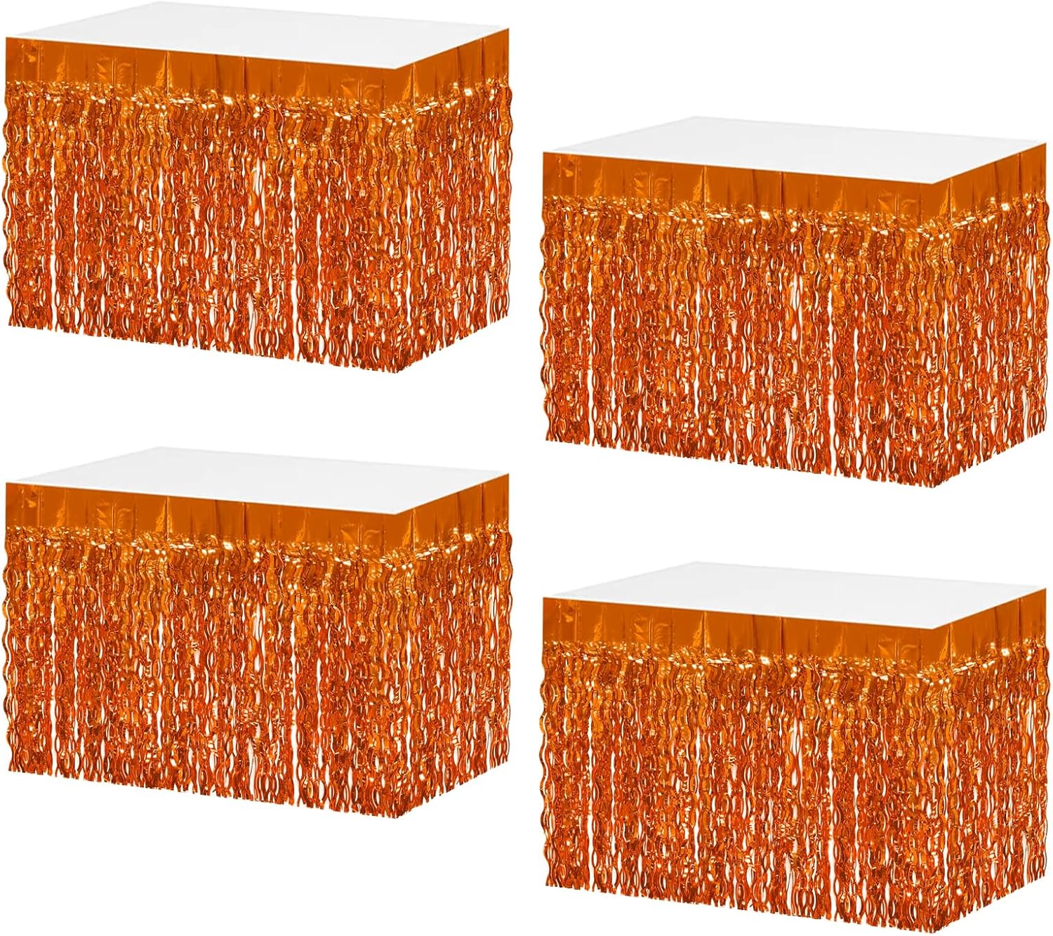 4P Wavy Metallic Tinsel Foil Fringe Table Skirts for Rectangle Tables Backdrop Garland Curtains for Parade Floats Wedding Birthday Parties Decoration Graduation 2025 Christmas (Orange)