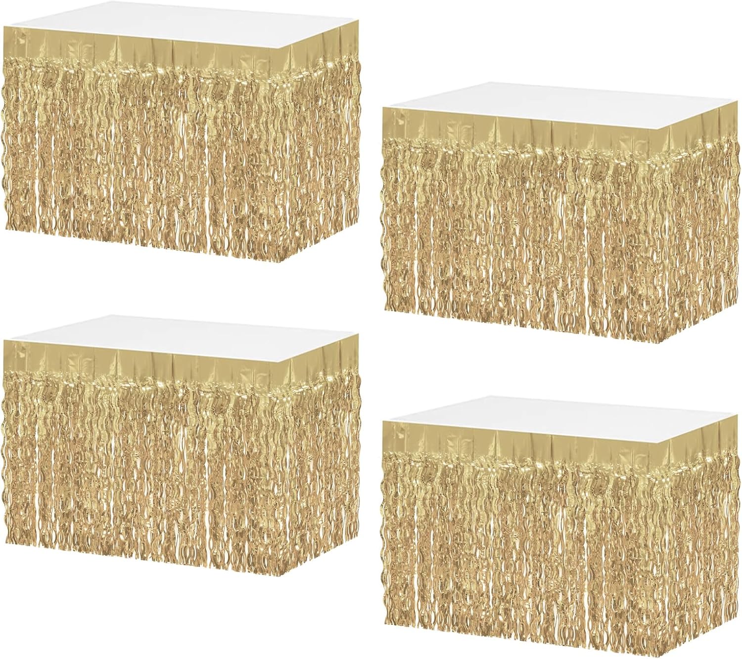 4P Wavy Metallic Tinsel Foil Fringe Table Skirts for Rectangle Tables Backdrop Garland Curtains for Parade Floats Wedding Birthday Parties Decoration Graduation 2025 Christmas (Champagne)