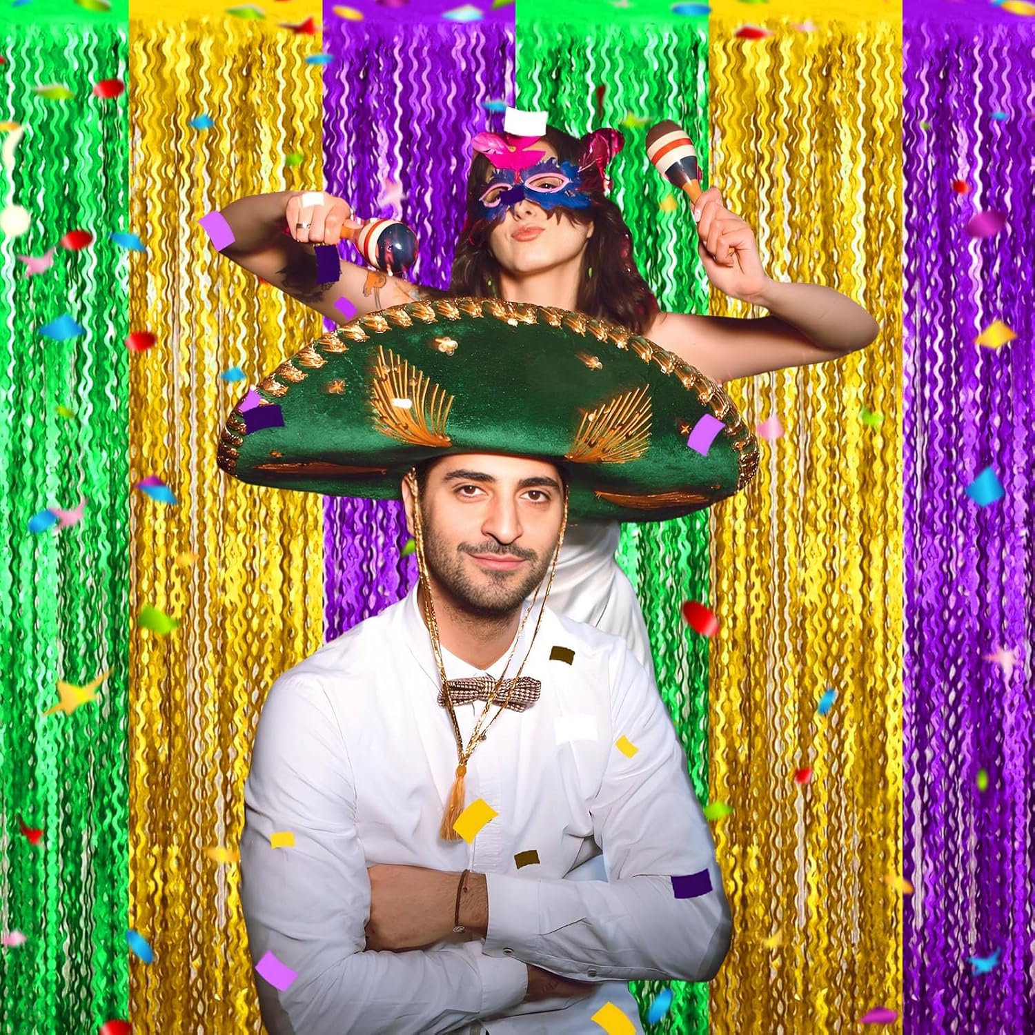 • Easy To Assemble | Strong Adhesive | Not Easy Fade : The foil fringe curtain backdrop party decorations come with double-sided adhesive tape, easy to use, just tear off the back of adhesive tape, then paste this streamers backdrop curtains on the top of wall, window, table, or as door fringe decoration.