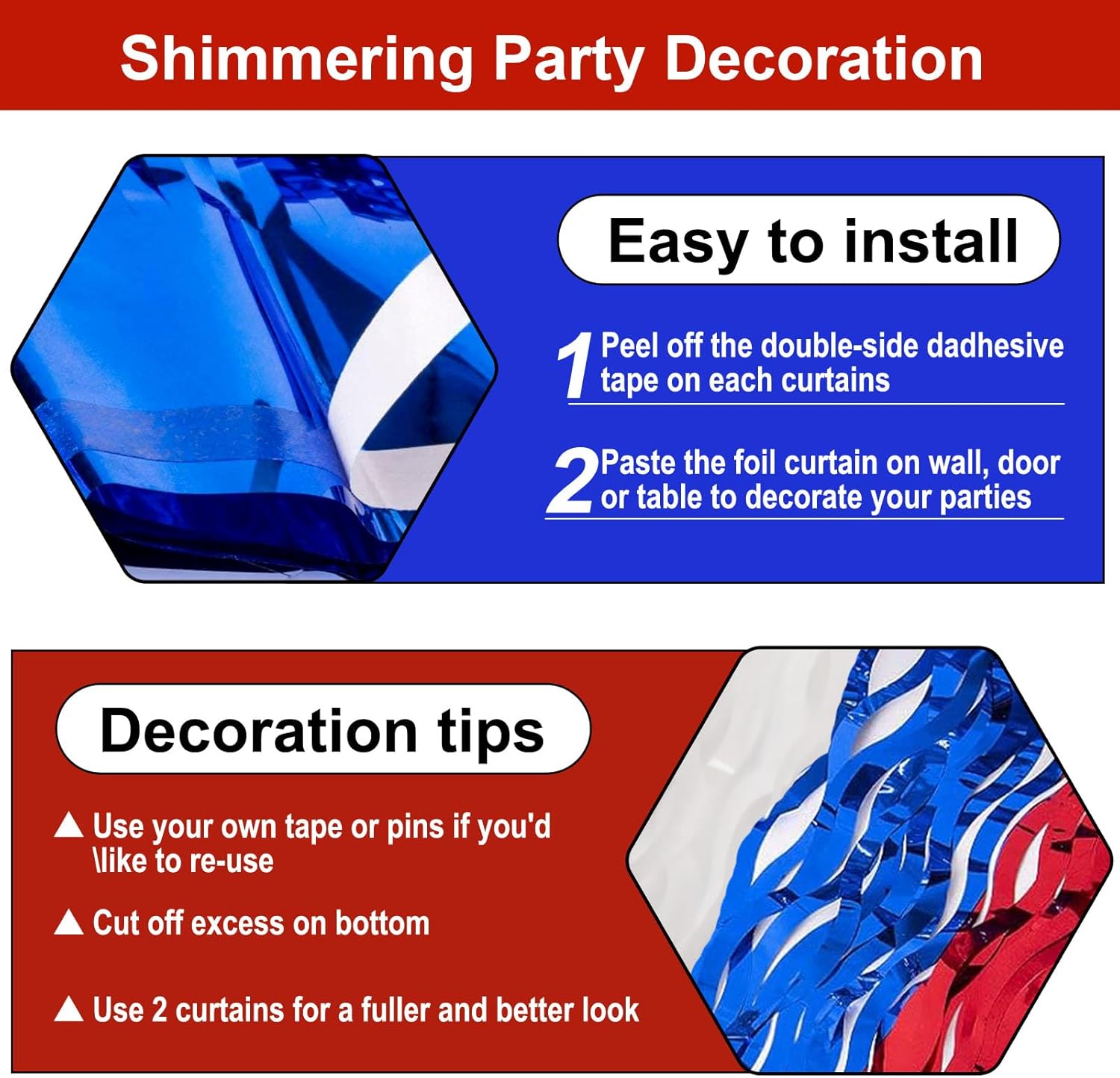 • Easy To Assemble | Strong Adhesive | Not Easy Fade : The foil fringe curtain backdrop party decorations come with double-sided adhesive tape, easy to use, just tear off the back of adhesive tape, then paste this streamers backdrop curtains on the top of wall, window, table, or as door fringe decoration.