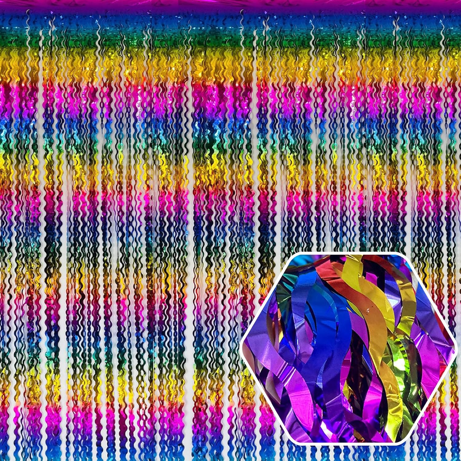 4 Pack Rainbow Wave Foil Fringe Curtain Backdrop, 3.28Ft x 8.2Ft Metallic Tinsel Foil Fringe Streamer Curtains for Photo Booth, Mother's Day, Easter, Birthday, Wedding Party Decoration
