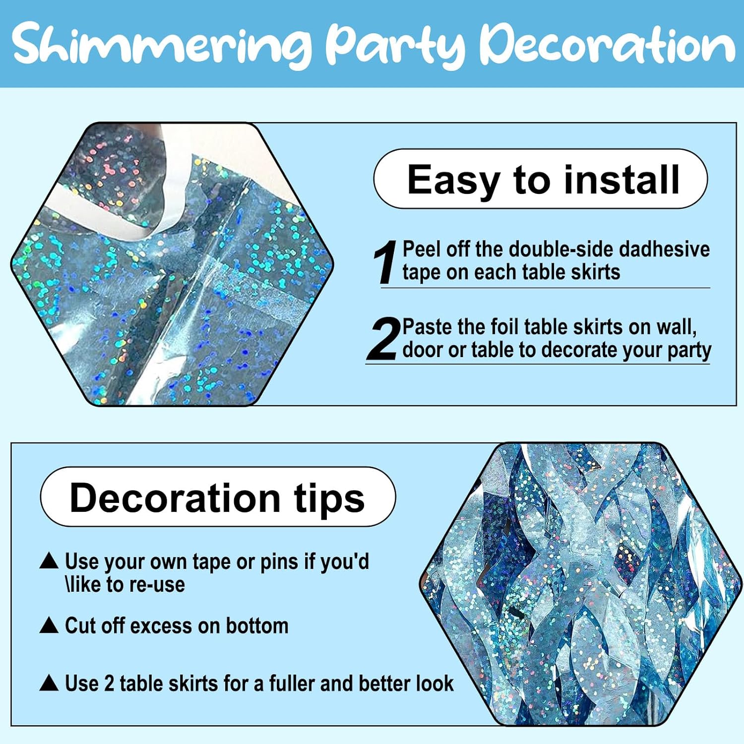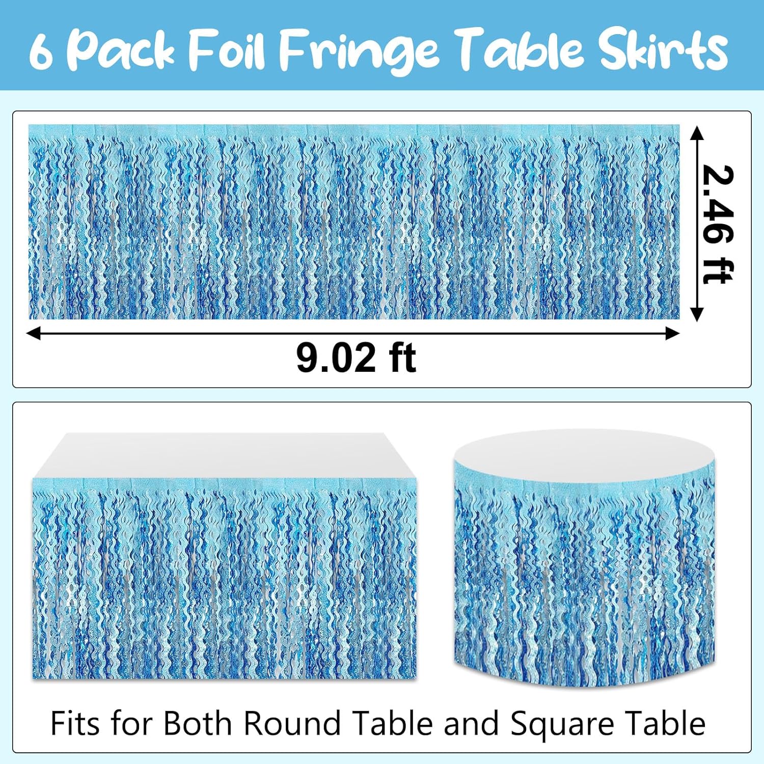 6Pack 29 x108 Inch Light Blue Wave Foil Fringe Table Skirts Metallic Banner for Tinsel Streamer Garland Backdrop for Parade Floats, Mother's Day, Easter, Graduate, Birthday, Wedding Party Decoration