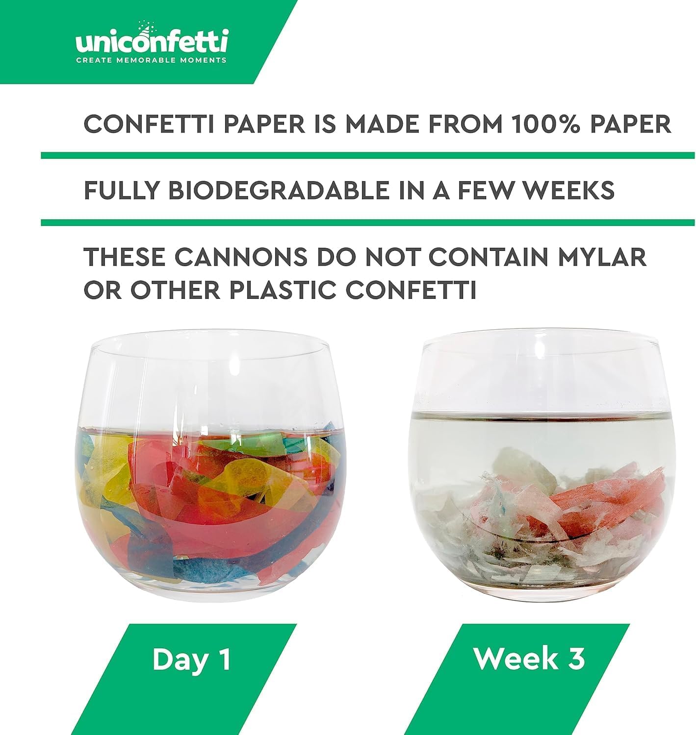 • πŸŽ‰ 100% BIODEGRADABLE & SAFE - Confetti are made of lightweight fire resistant papers, 100% biodegradable. Color dye is non-toxic and won't rub onto your clothing. 100% safe for your party and good for the environment.