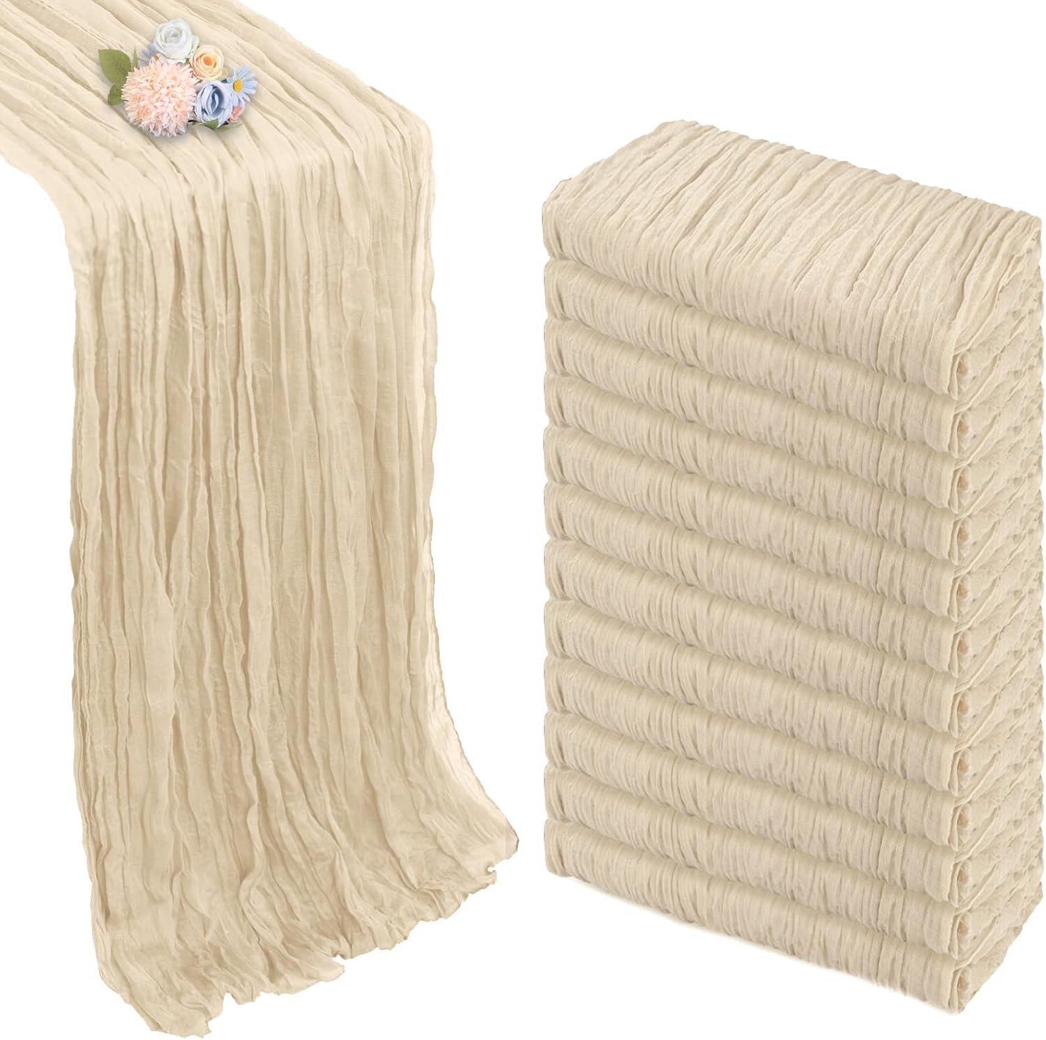12 Pack Beige Cheesecloth Fall Table Runner 10ft Boho Gauze Fabric Cheese Cloth Table Runner 35 x 120 Inch Rustic Sheer Runner for Thanksgiving Wedding Decor Baby Shower Party Centerpiece Decoration