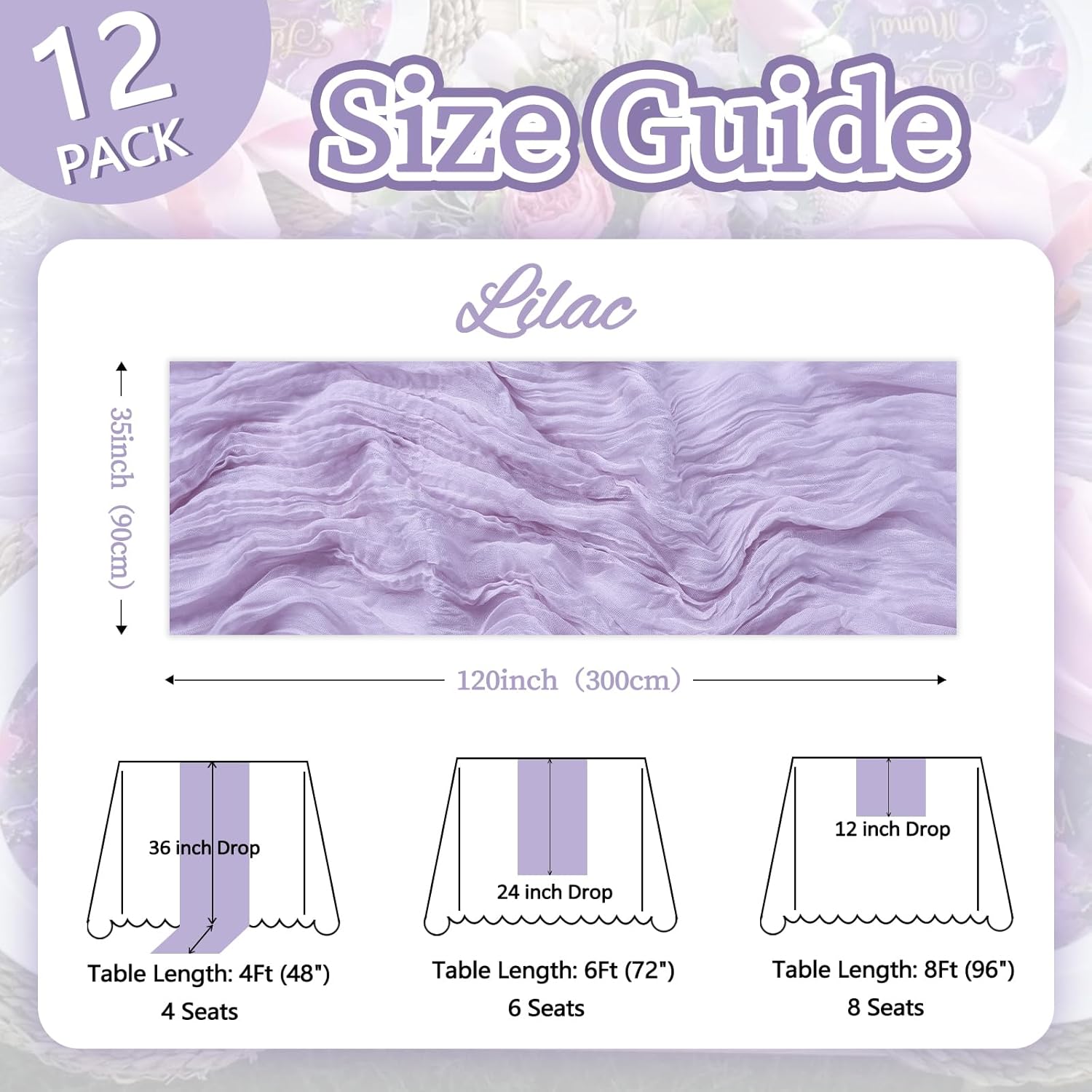 • 【Package Included】You Will Be Delighted To Receive 12 Pack Of Lilac Purple Table Runner. The Lilac Purple Cheesecloth Table Runner Quantity Is Abundant, Fully Meeting Your Daily Use And Various Event Needs. The Size Of The Table Runners Is 35 x 120 Inch, Which Can Perfectly Fit Tables Or Chairs In Various Event Scenarios. Besides, We Have Carefully Prepared A Wide Range Of Color Options For You, Which Are Highly Suitable For Creating A Romantic And Extraordinary Atmosphere.