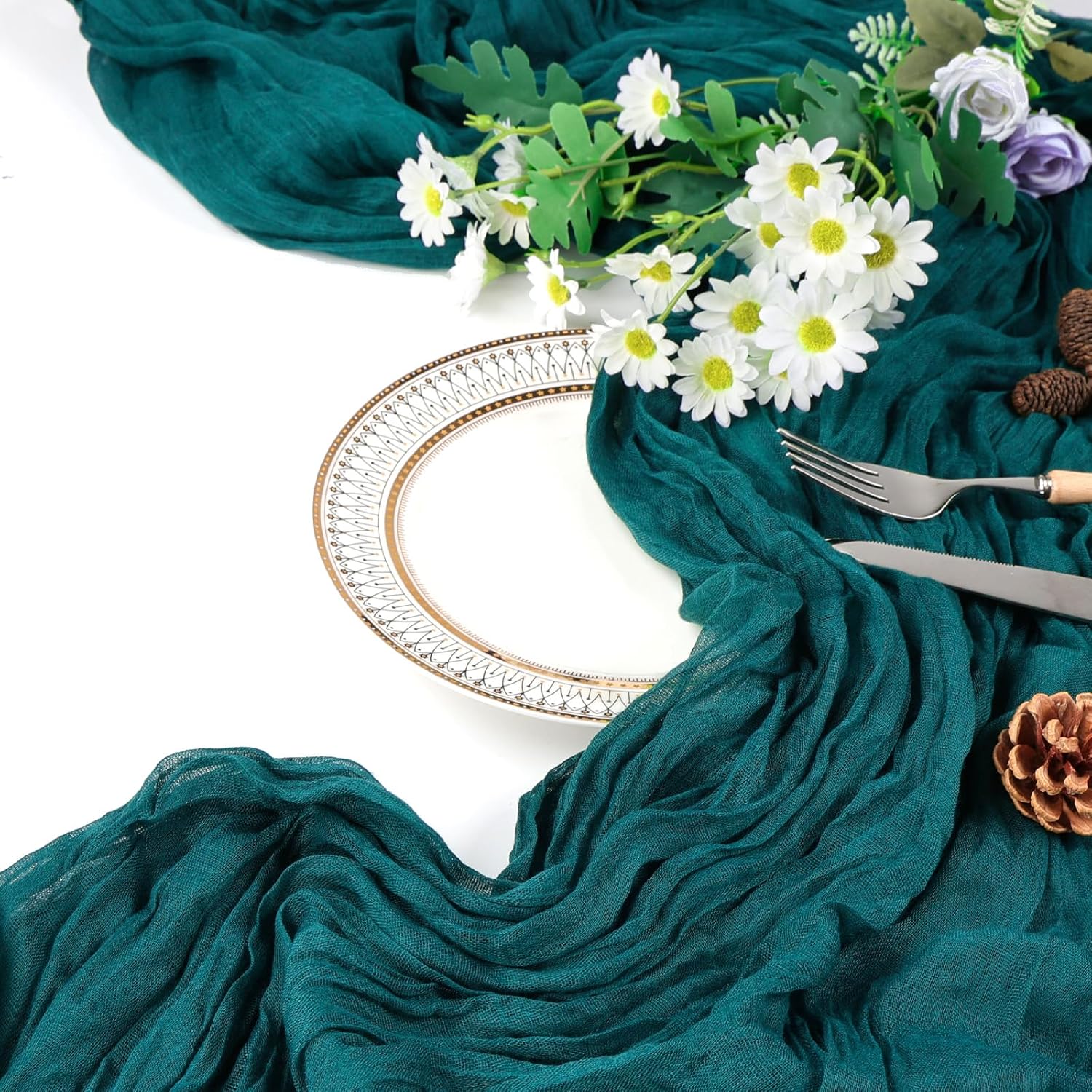 12 Pack Teal Cheesecloth Table Runner 10ft Boho Gauze Fabric Cheese Cloth Table Runner 35 x 120 Inch Rustic Sheer Runner for Romantic Wedding Decor Baby Shower Party Table Centerpiece Decoration