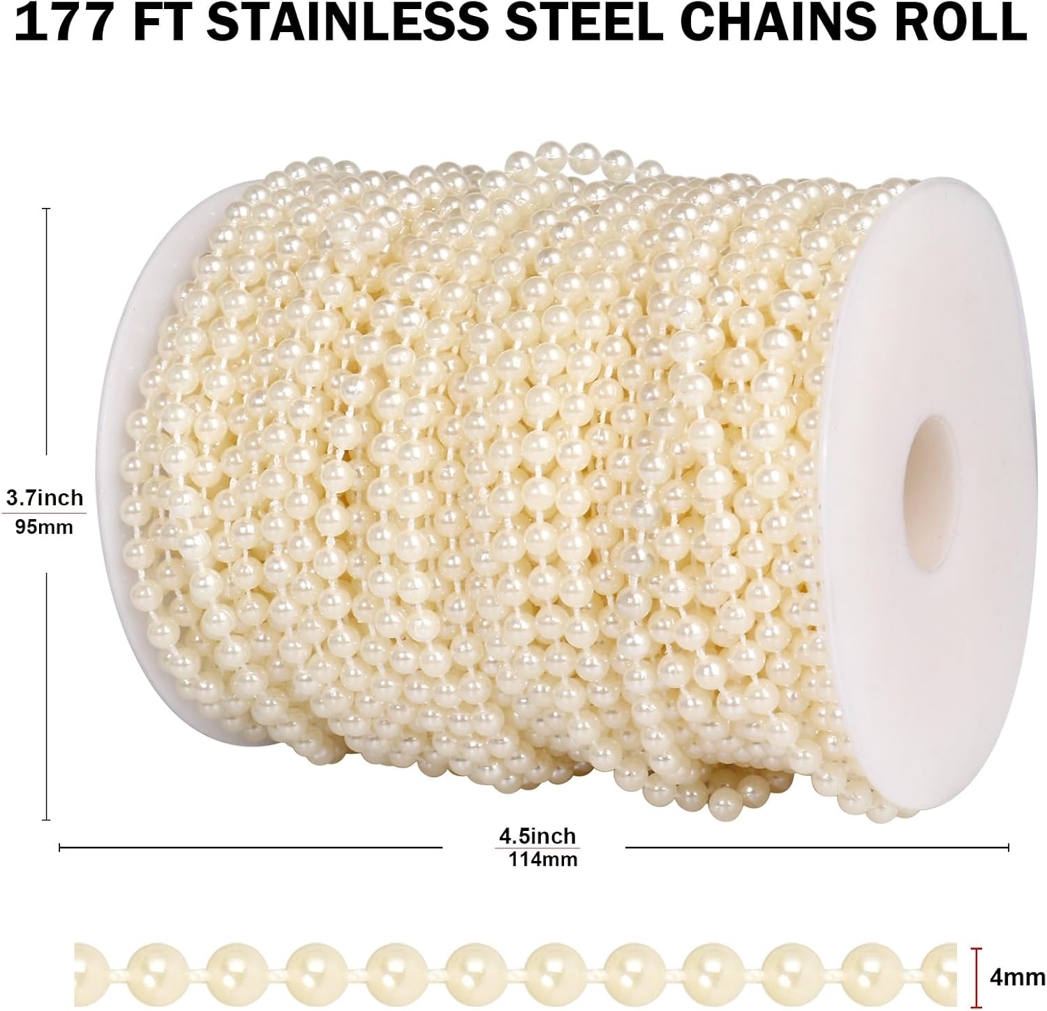177 FT Pearl Beads Garland for Decoration, 4MM Craft Pearl Beads String Spool Ivory Color Faux Pearl Strand Roll for DIY Craft Wedding Party Christmas Tree Decoration