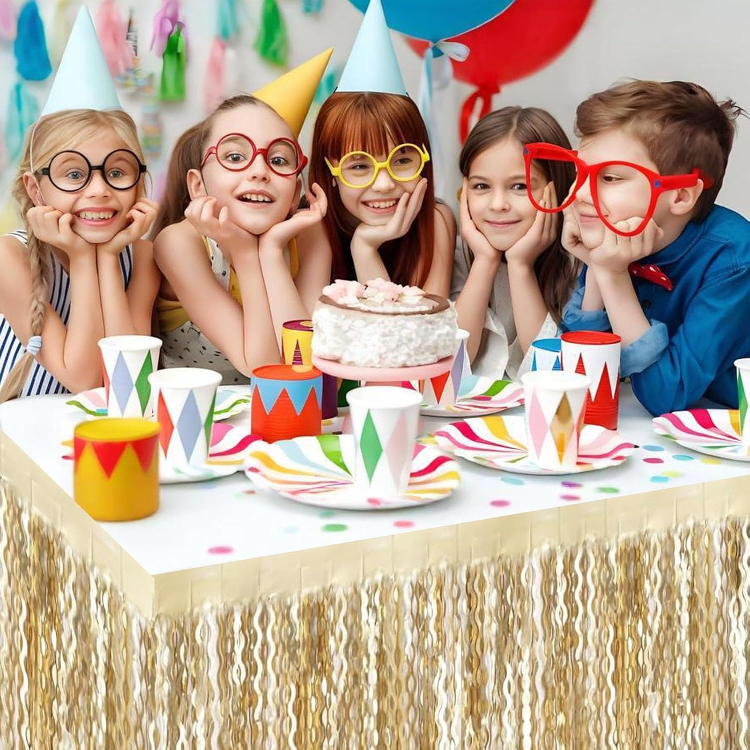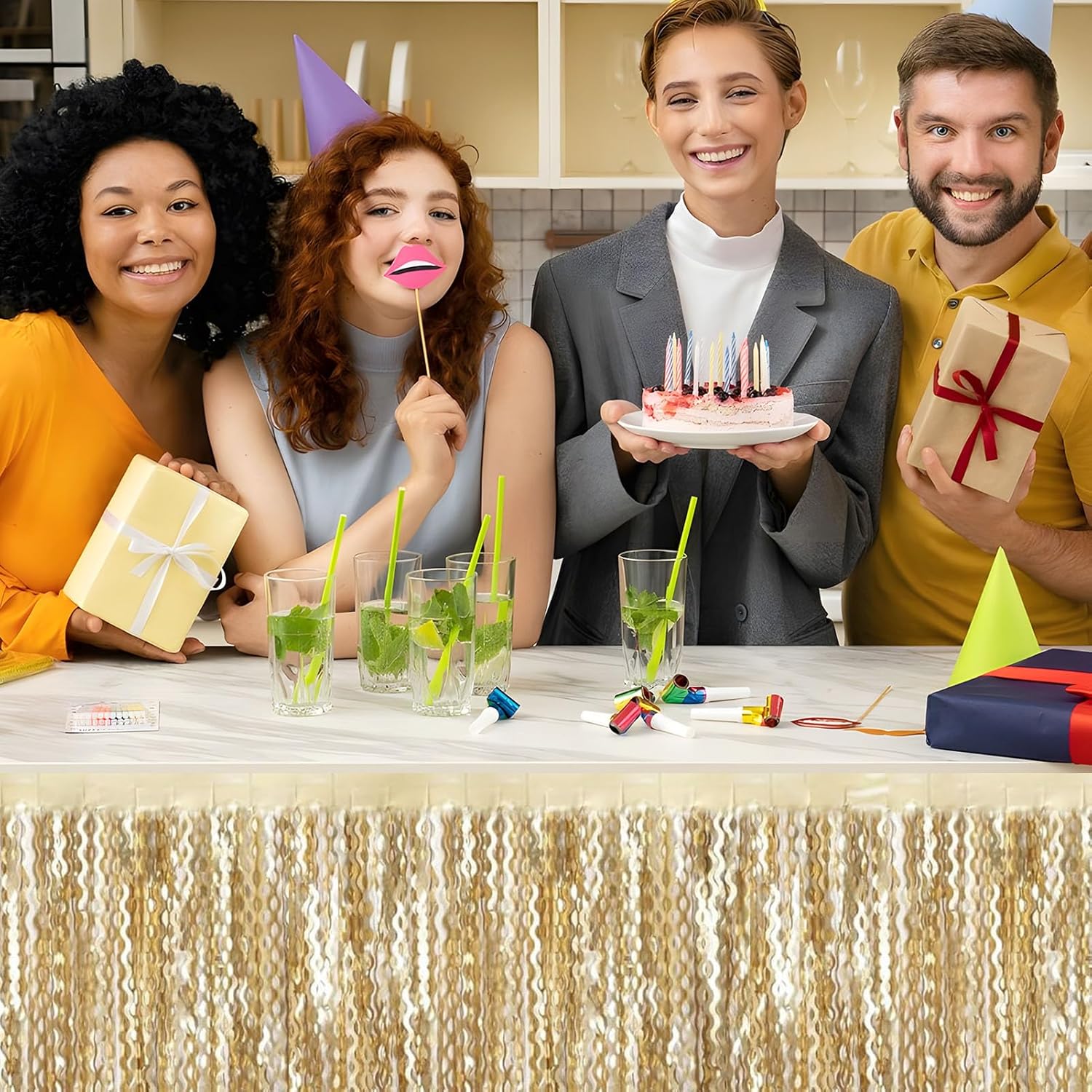 • Package Includes: 6pcs/set metallic fringe table skirts / shiny tassel banner, beautiful and shiny, provide you with great decoration effects, Each pack of table skirt measures 29x108 inches. Each one will be 9 Ft long, 6 pack will cover 54 FT length of tables.