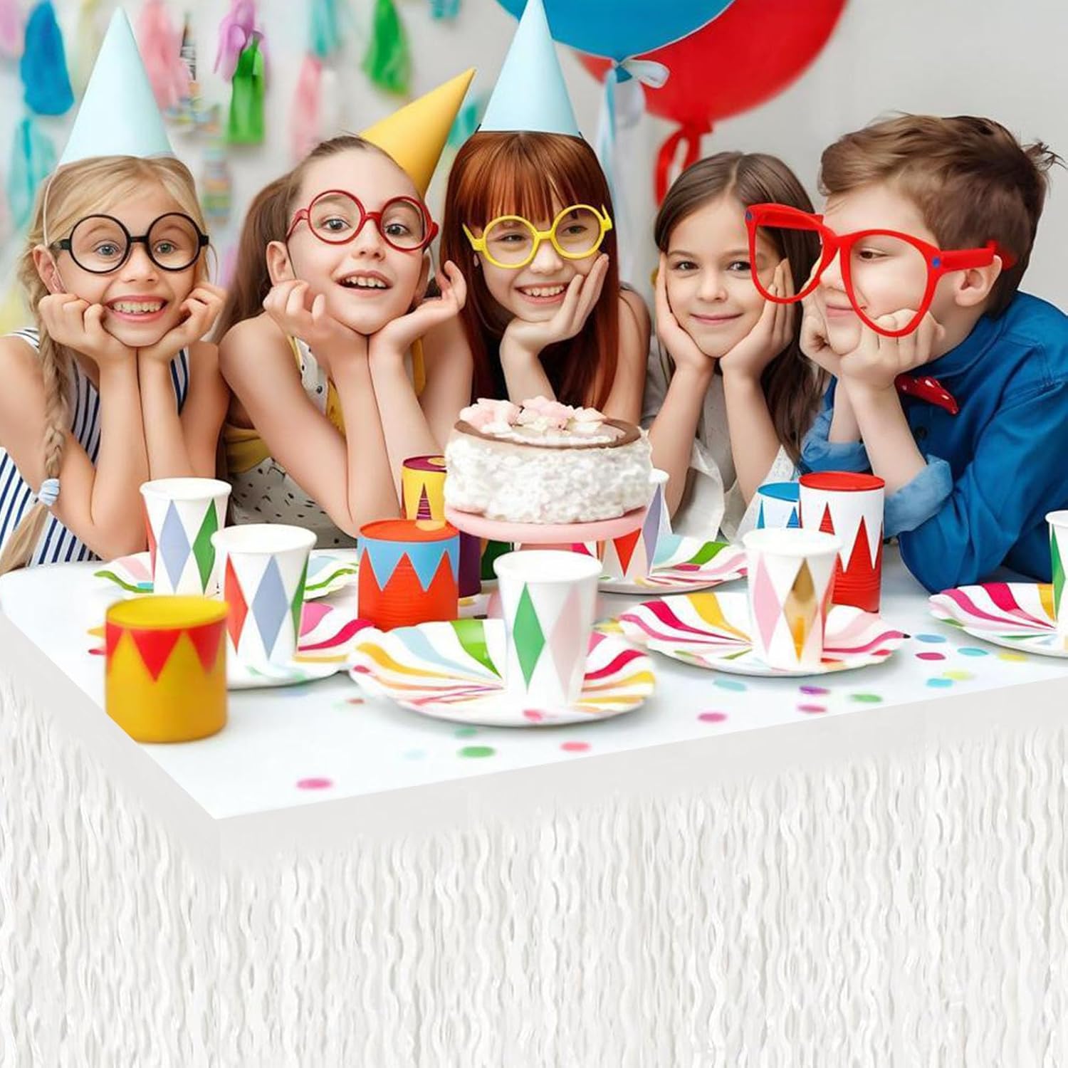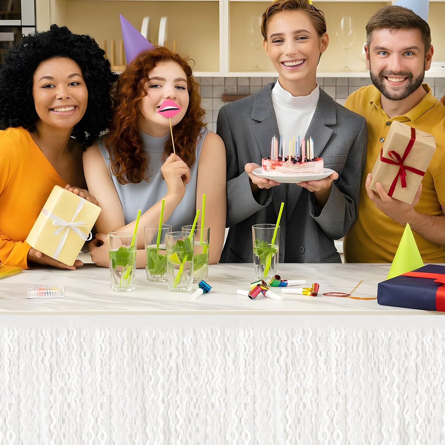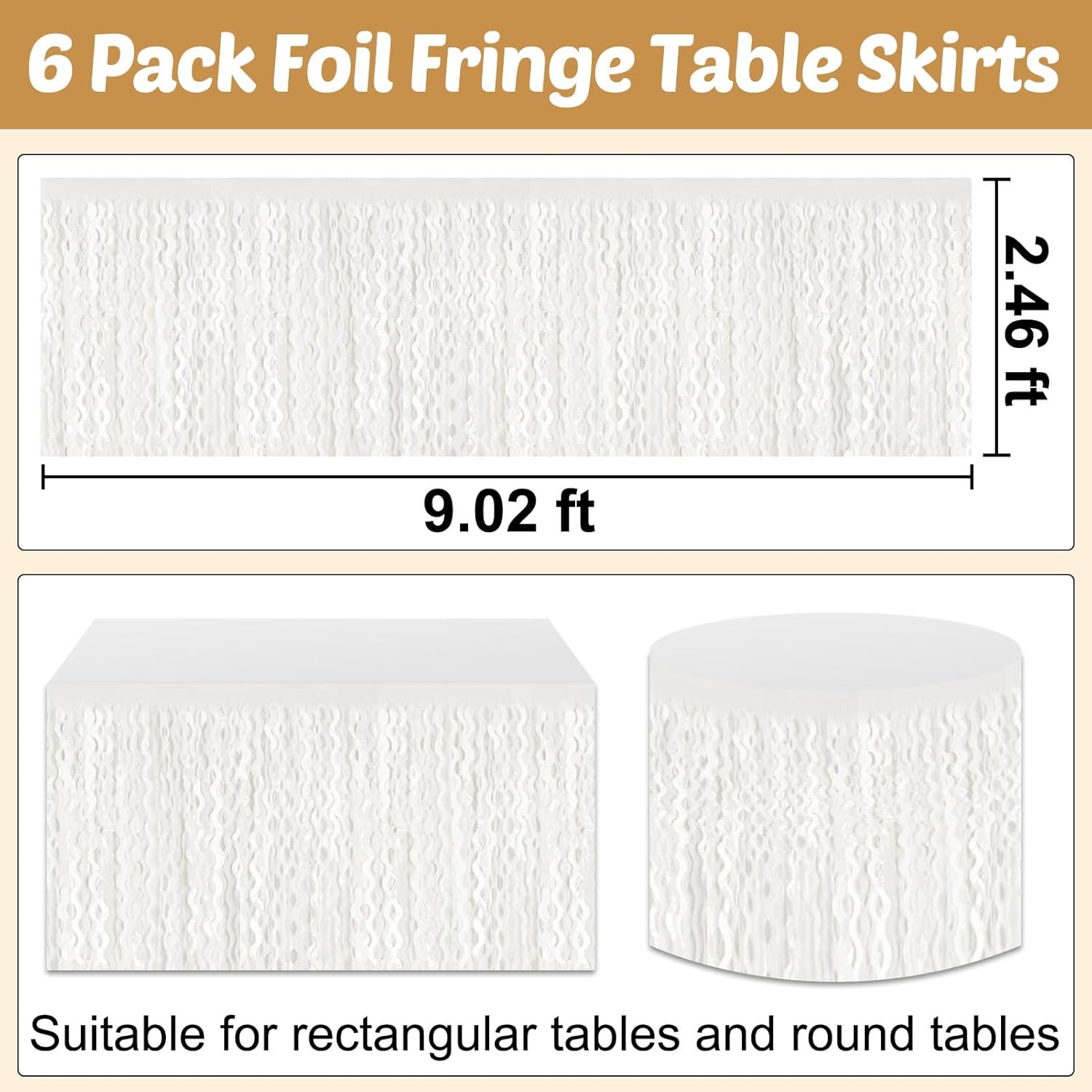 6 Pack 29x108 Inch Macaron White Wave Foil Fringe Table Skirts Metallic Banner for Tinsel Streamer Garland Backdrop for Parade Floats Wedding, Mother's Day, Birthday Mardi Gras Party Decorations