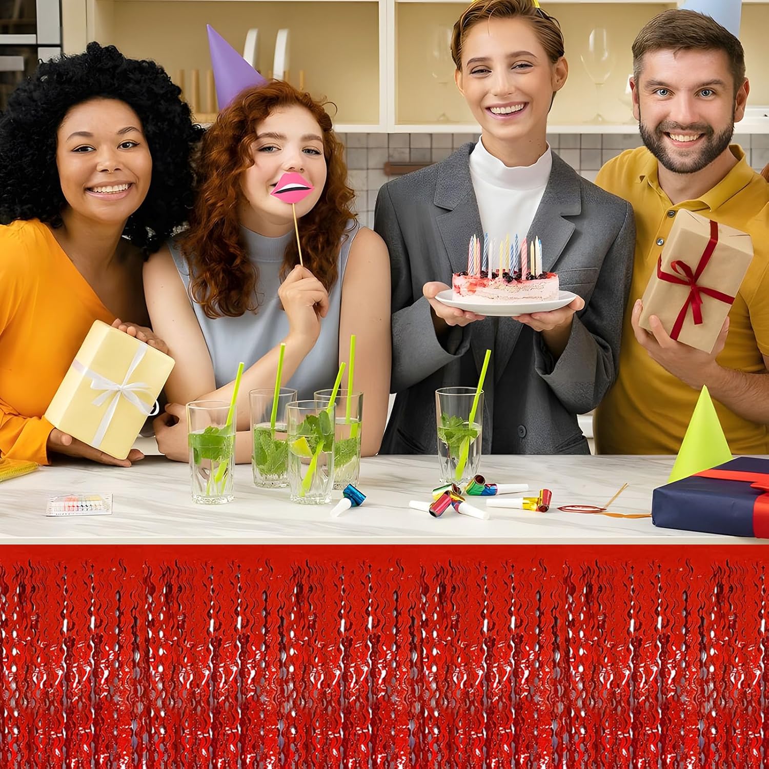 • Package Includes: 6pcs/set metallic fringe table skirts / shiny tassel banner, beautiful and shiny, provide you with great decoration effects, Each pack of table skirt measures 29x108 inches. Each one will be 9 Ft long, 6 pack will cover 54 FT length of tables.