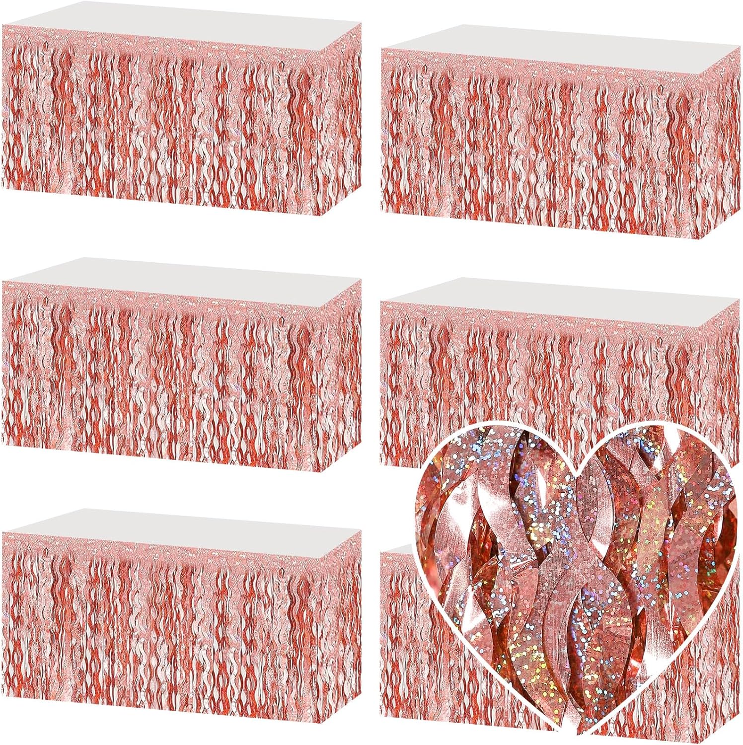 6 Pack 29x108 Inch Rose Gold Wave Foil Fringe Table Skirts Metallic Banner for Tinsel Streamer Garland Backdrop for Parade Floats Mother's, Graduate, Mardi Gras, Birthday, Wedding Party Decorations