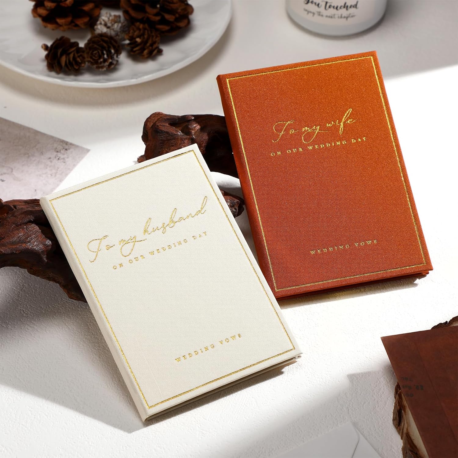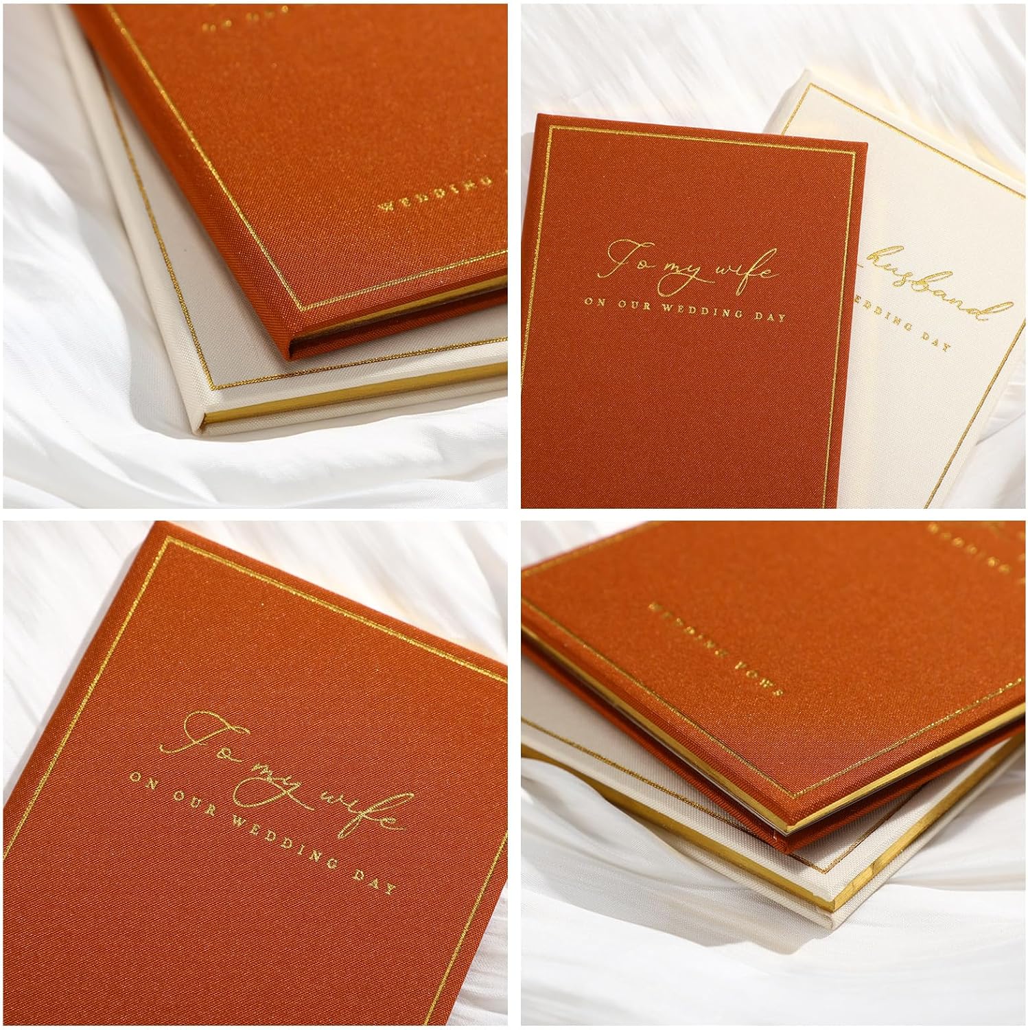 • Elegant Wedding Vow Books: you will receive two pieces wedding vow books, printed with [To my husband] and [To my wife]. These two books have gold foil cover and gold edges, which will add a refined and elegant feeling to the vow books. Whether you use them at the ceremony or keep them as souvenirs, these exquisite vow books are the nice souvenirs for exchanging vows on your special day