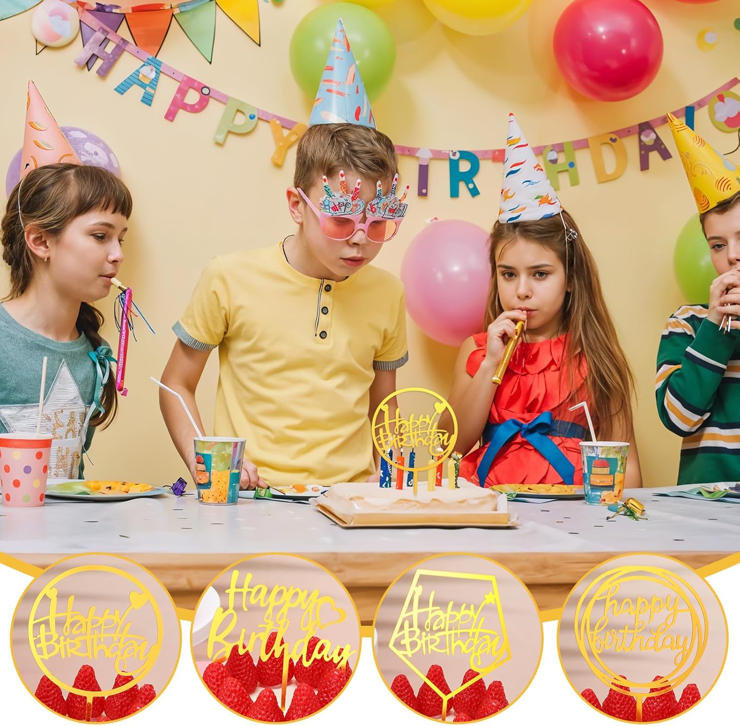 • Included: A total of 100 golden birthday happy cake toppings, with a total of 10 designs, each with 10 pieces, giving customers plenty of options to choose from and making it perfect for any occasion or celebration.