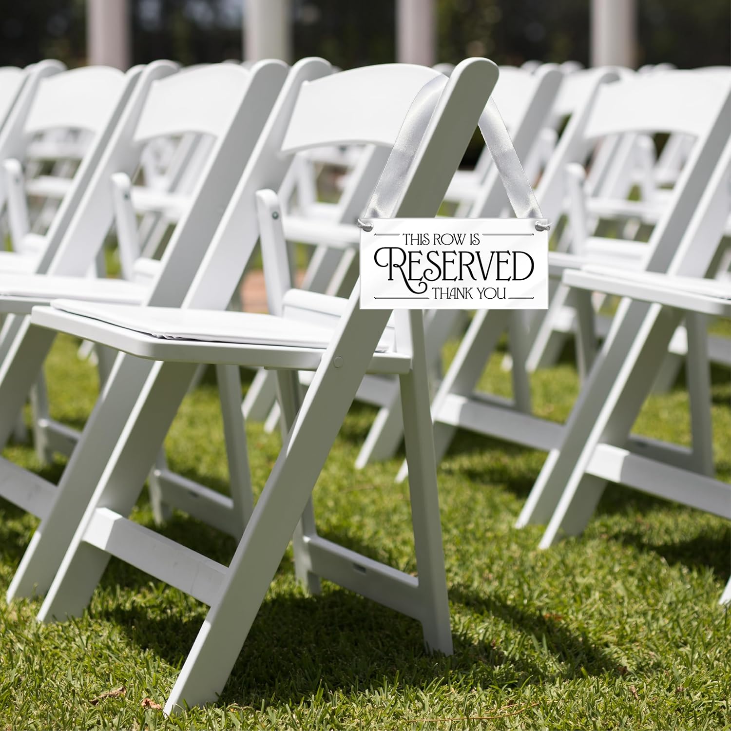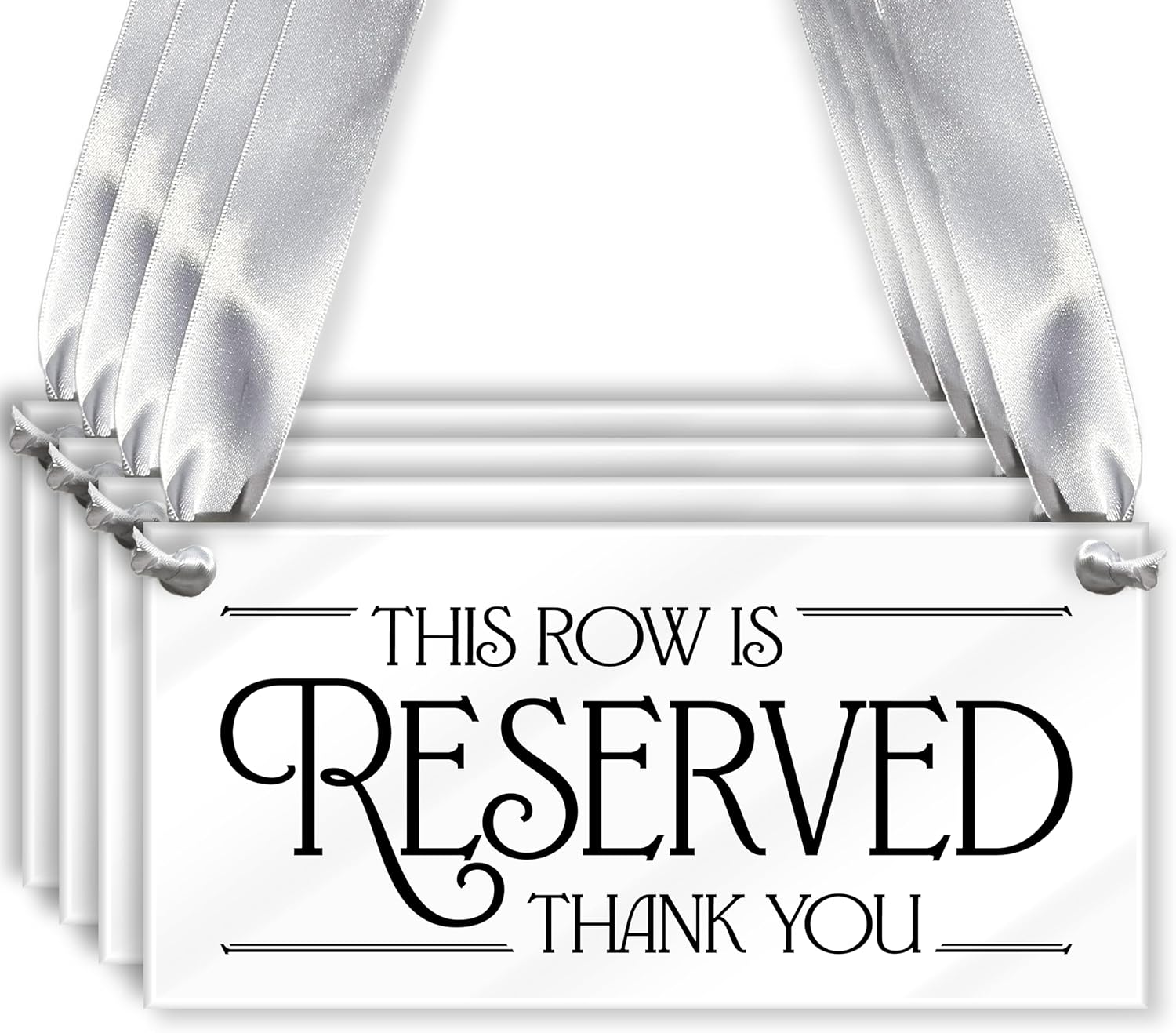 • Acrylic Reserved Seating Signs - Constructed of premium acrylic, this row is reserved signs for wedding has a luxury finish while being exceedingly durable. Measures 7.75x3.75 inches and includes thick white ribbon for hanging purposes.