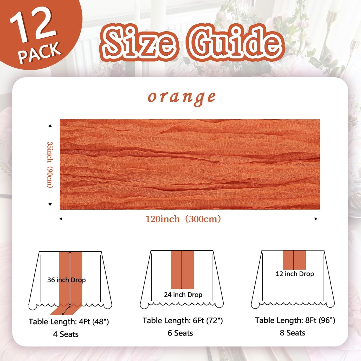 12 Pack Fall Thanksgiving Table Runner Orange 10ft Boho Gauze Fabric Cheesecloth Table Runner 35 x 120 Inch Rustic Sheer Runner for Wedding Home Décor Halloween Party Table Centerpiece Decorations