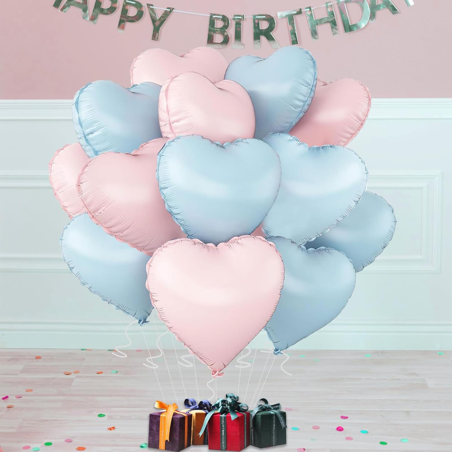 • Heart-Shaped Foil Balloons:The package includes 6Pcs light Blue and 6Pcs light pink balloons measuring 18 inches, 1Pcs white ribbon 393 inches long, 1Pcs straw, which can help you decorate the party better.
