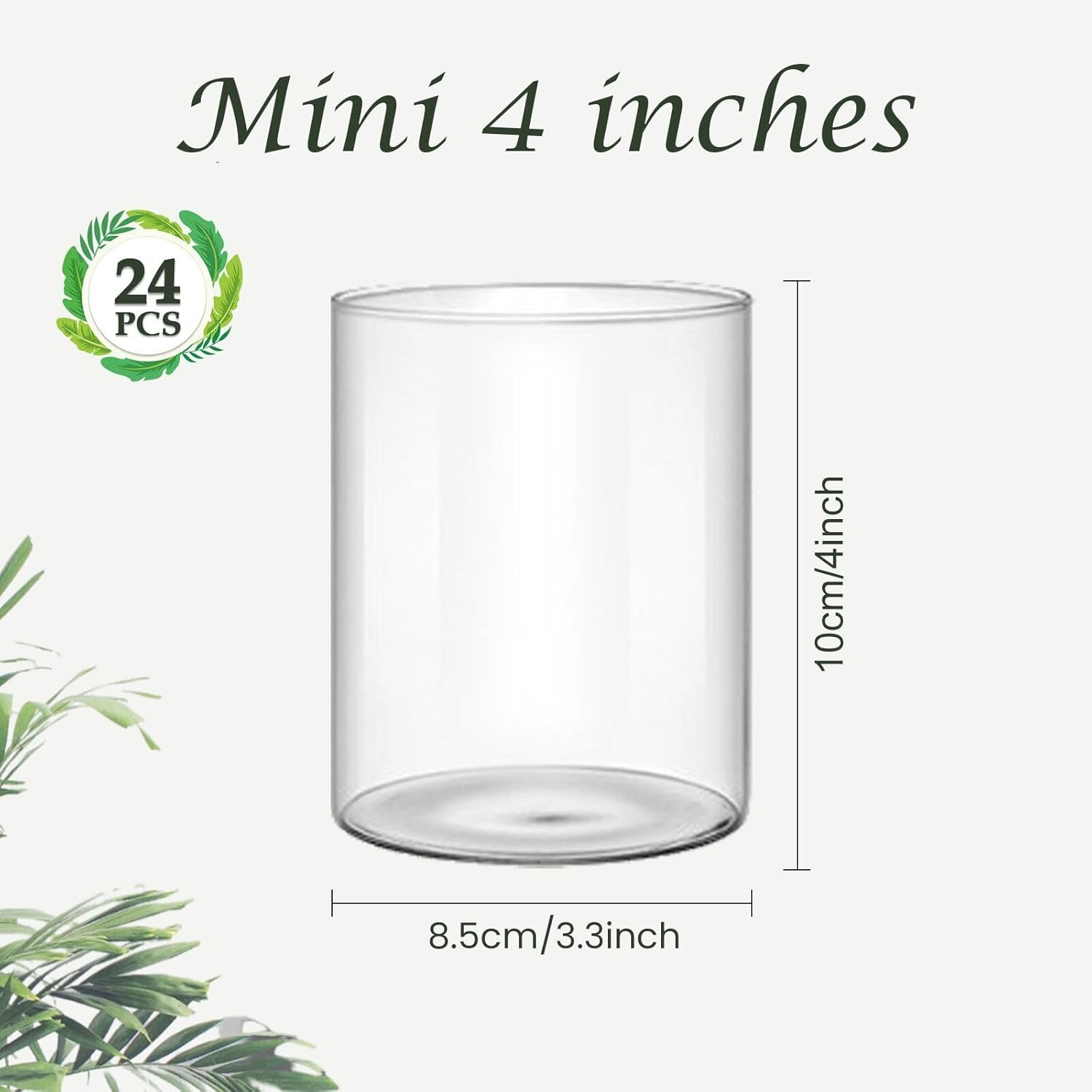 24 Pcs 4 Inch Tall Glass Vases Bulk Clear Cylinder Flower Vases Transparent Candle Holder for Wedding Centerpieces Home Decoration Dinners Party Event